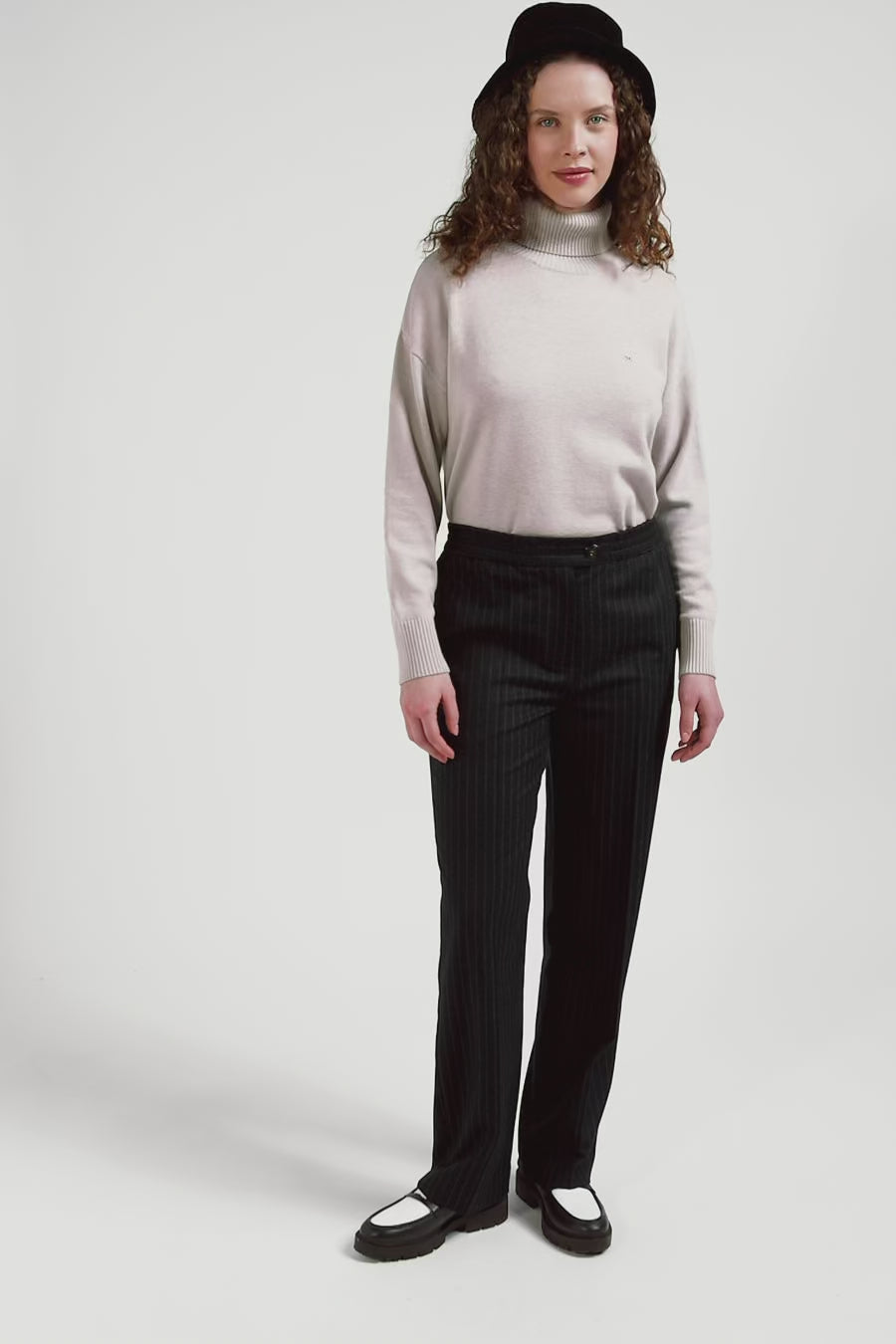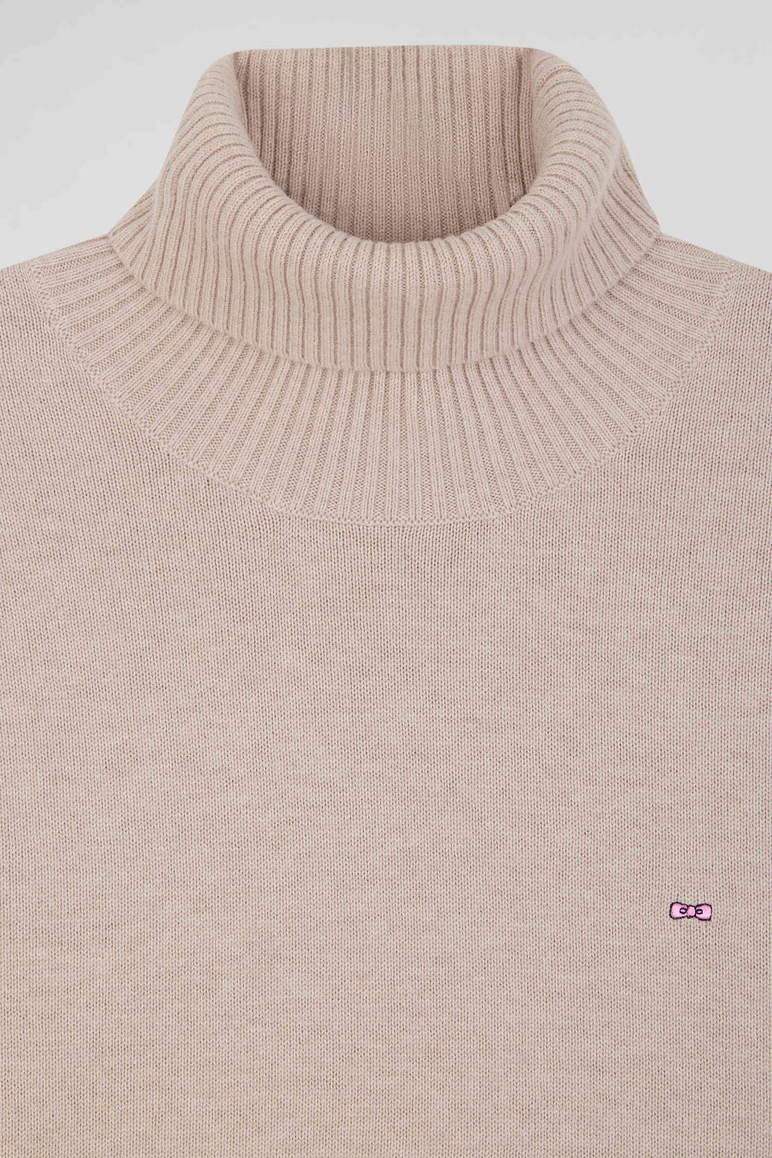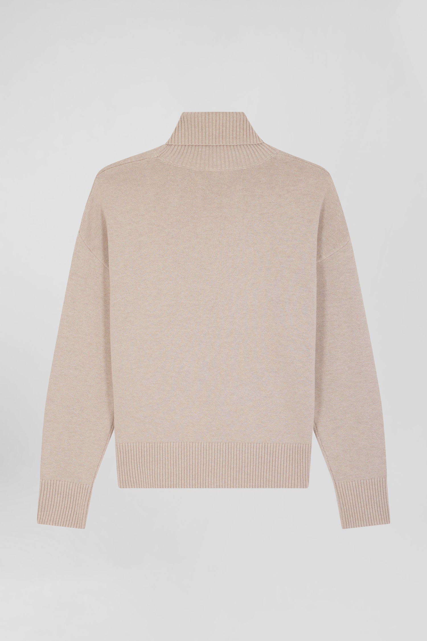 This plain turtleneck sweater, designed in a comfortable blend of natural fibers combining 55% wool and 45% cotton, combines warmth and softness. Featuring ribbed edges for a neat finish and perfect fit, this feminine, slightly loose-fitting sweater is adorned with Eden Park's signature discreet bow-tie embroidery. Available in six timeless colors, this soft turtleneck sweater is ideal for enriching your winter wardrobe with elegance and simplicity.