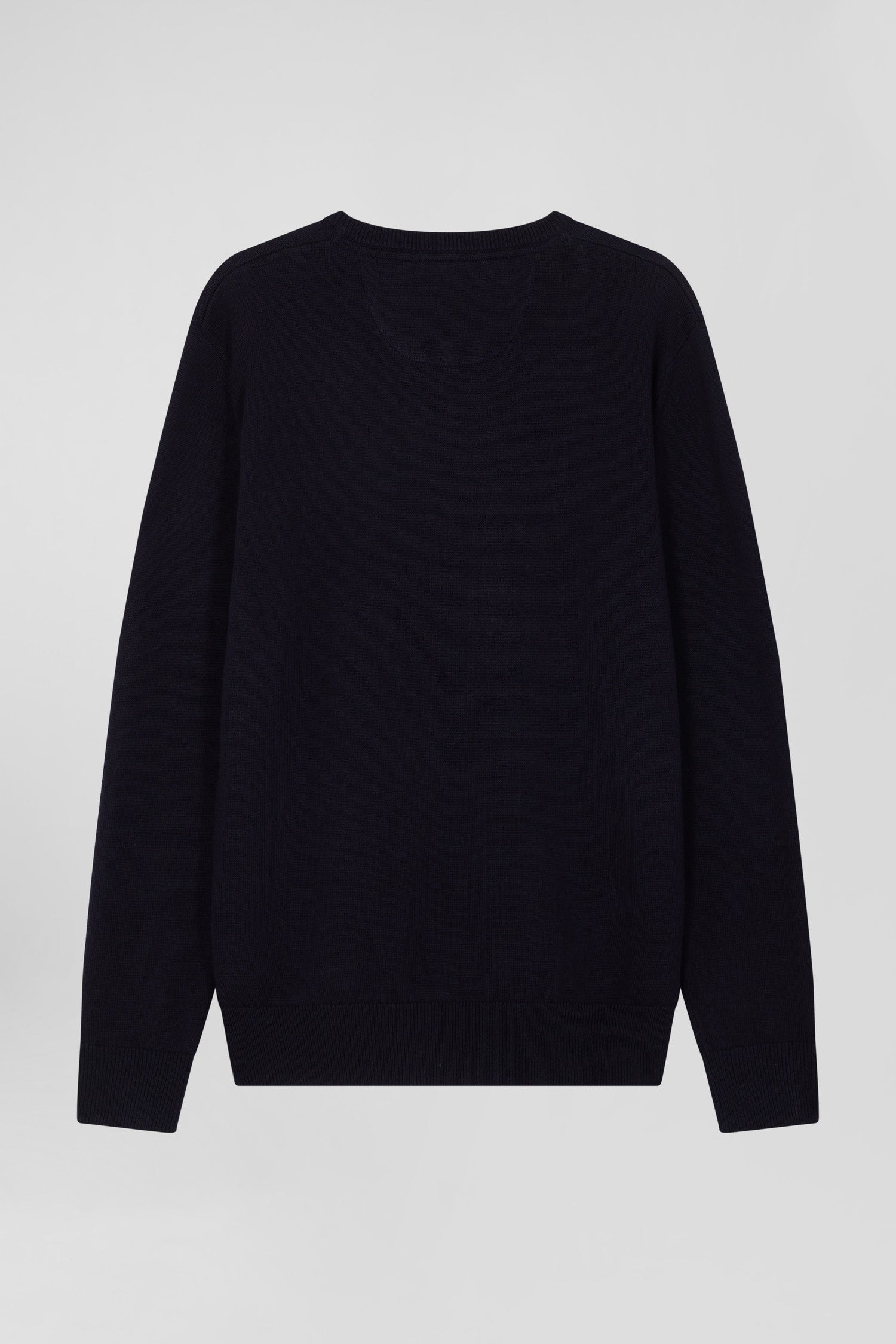 Regular navy blue wool and cotton crew neck jumper