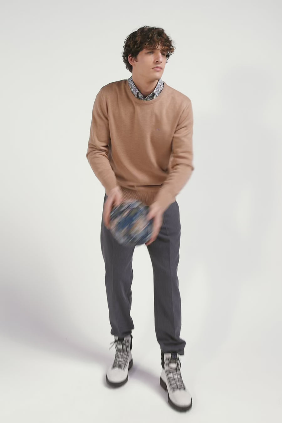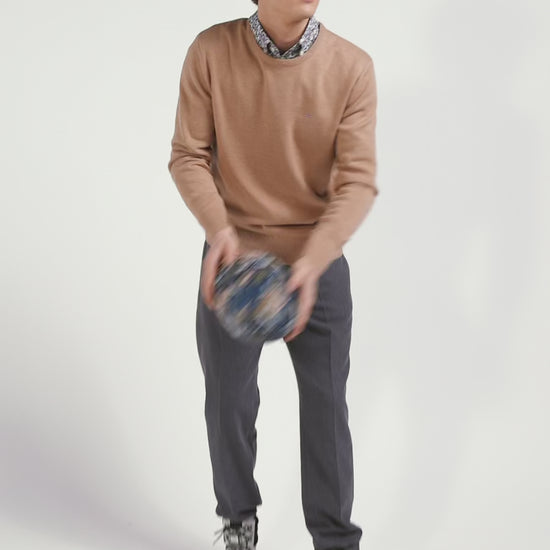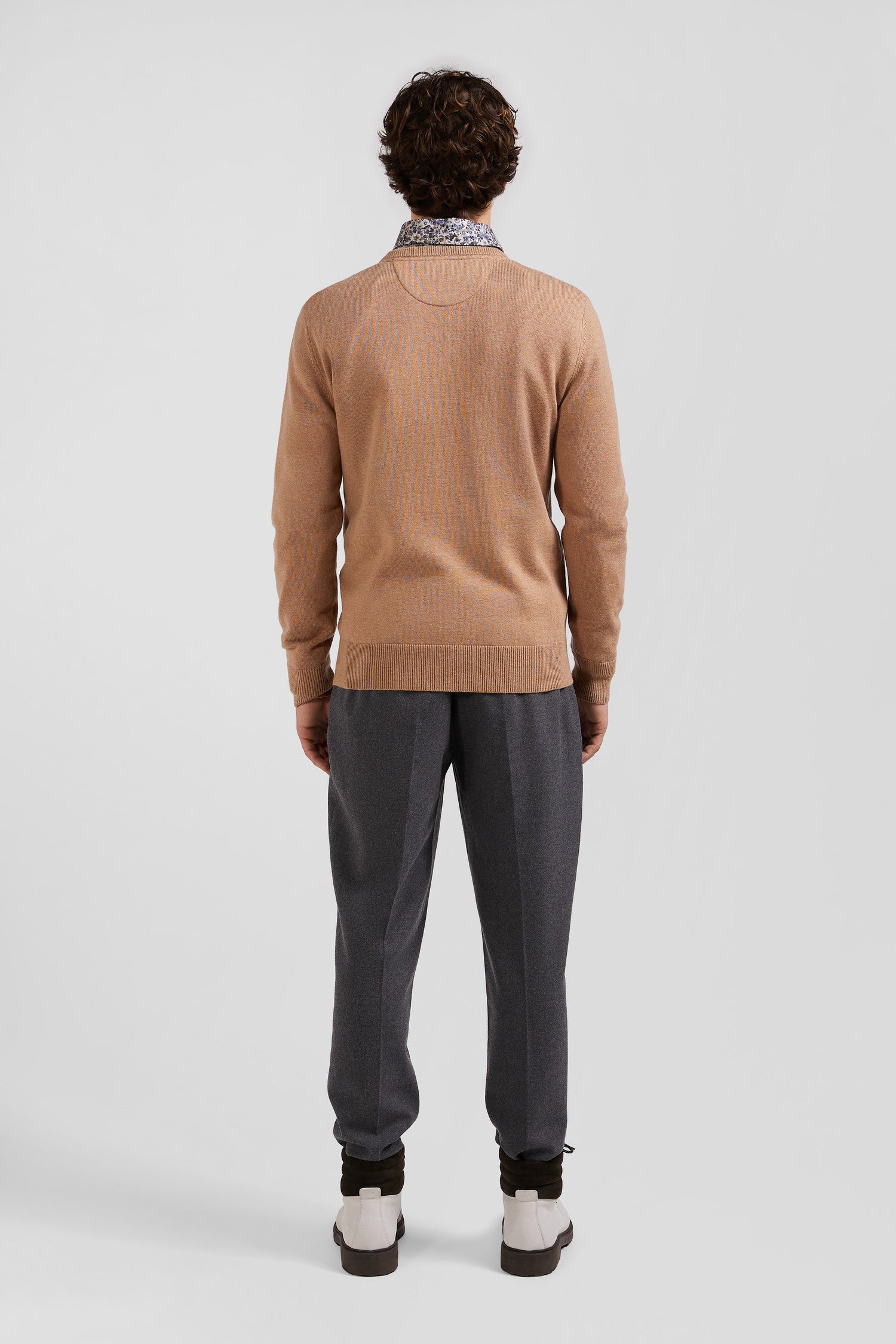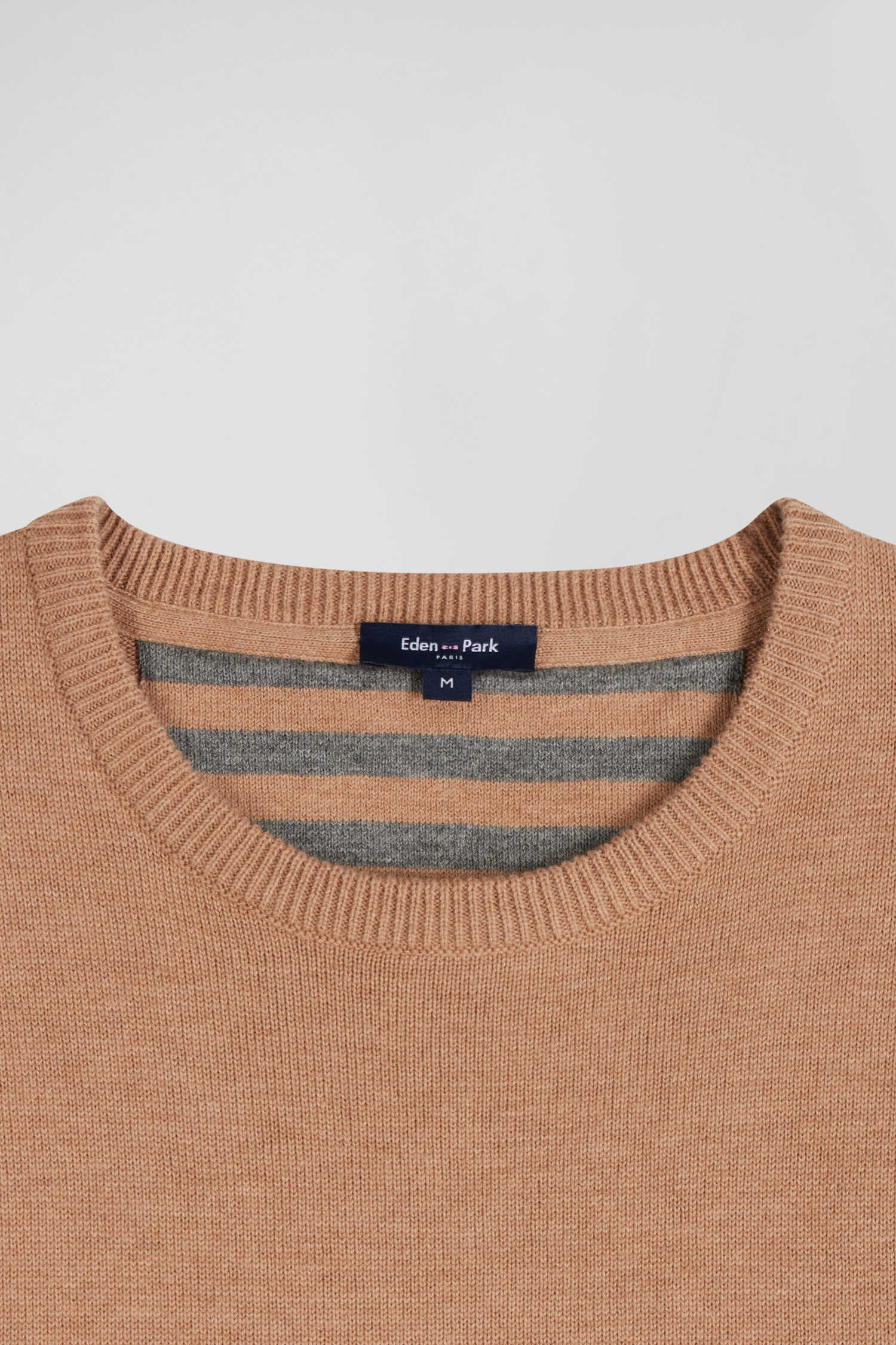 Regular camel wool and cotton crew neck jumper