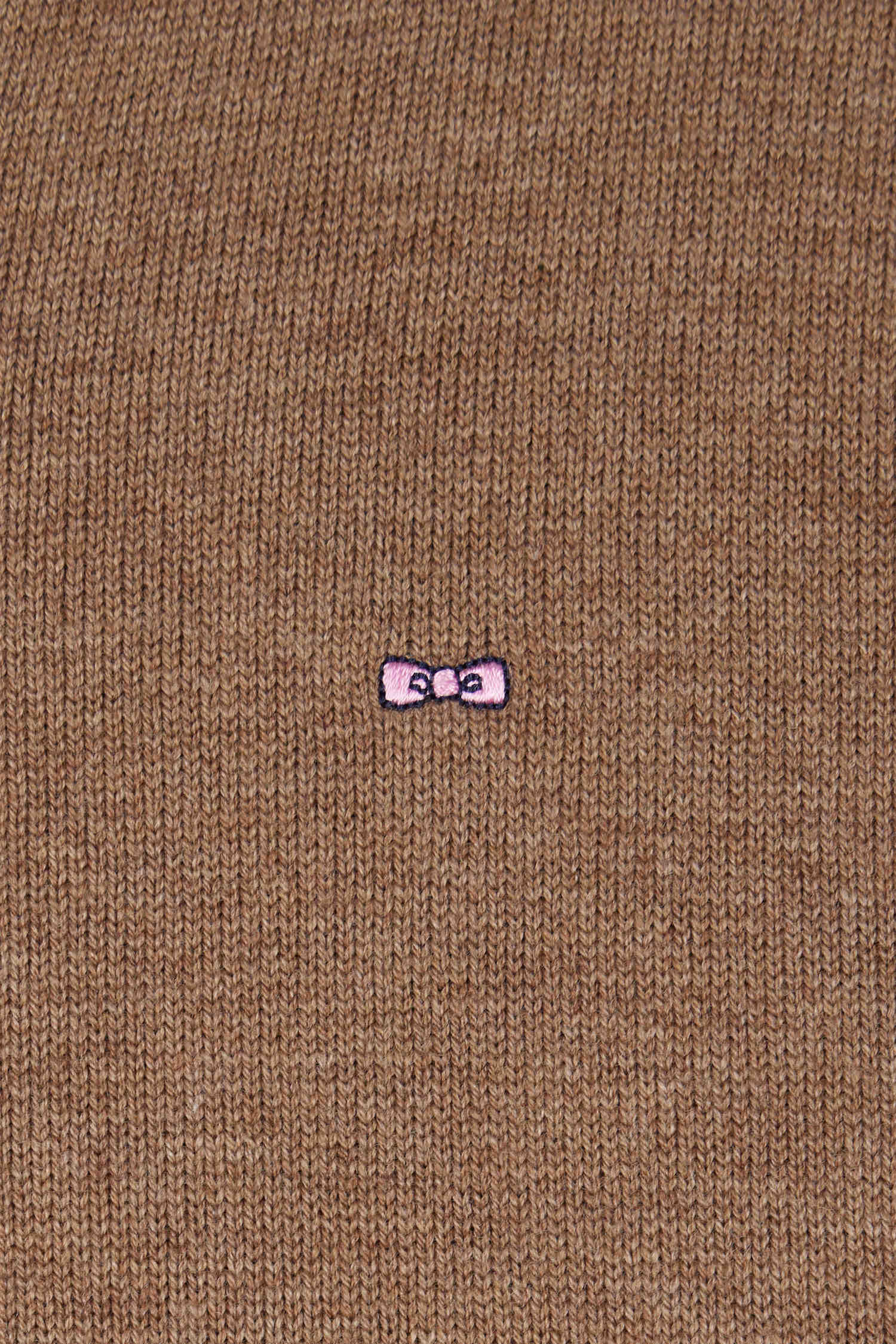 Regular camel wool and cotton V-neck jumper with striped details