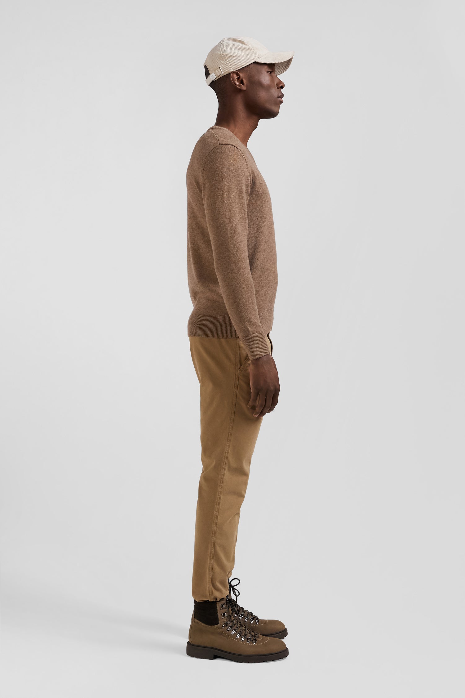 Discover the softness of a jersey knit combining the warmth of wool and the lightness of cotton in this plain V-neck sweater. Each hue is enhanced by a hooped striped inner half-moon, varying according to color for an elegant contrast. The embodiment of the company's expertise, this men's sweater is ideal for a casual look with jeans, or under a blazer for a more formal look in the depths of winter.