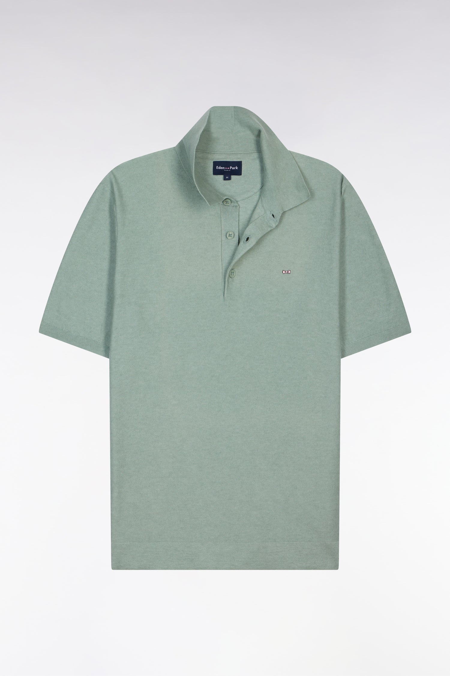 Short-sleeved sweater with polo collar in sea green cotton and lyocell blend