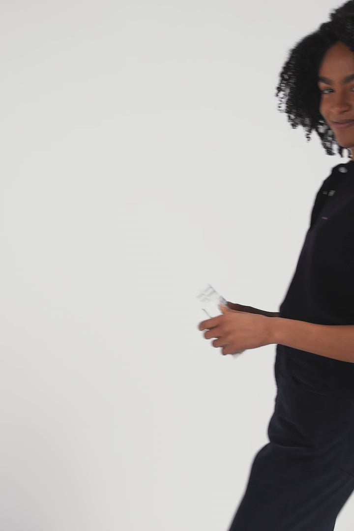 This women's polo-neck short-sleeved sweater in wool features a straight Regular fit for comfort and elegance. Signature oval rugby buttons add a distinctive touch to this timeless piece. Available in navy, black and three shades of gray, this versatile sweater is perfect for a casual chic look or a more professional look to match your associations. Wear it with a skirt or jeans to vary your style.