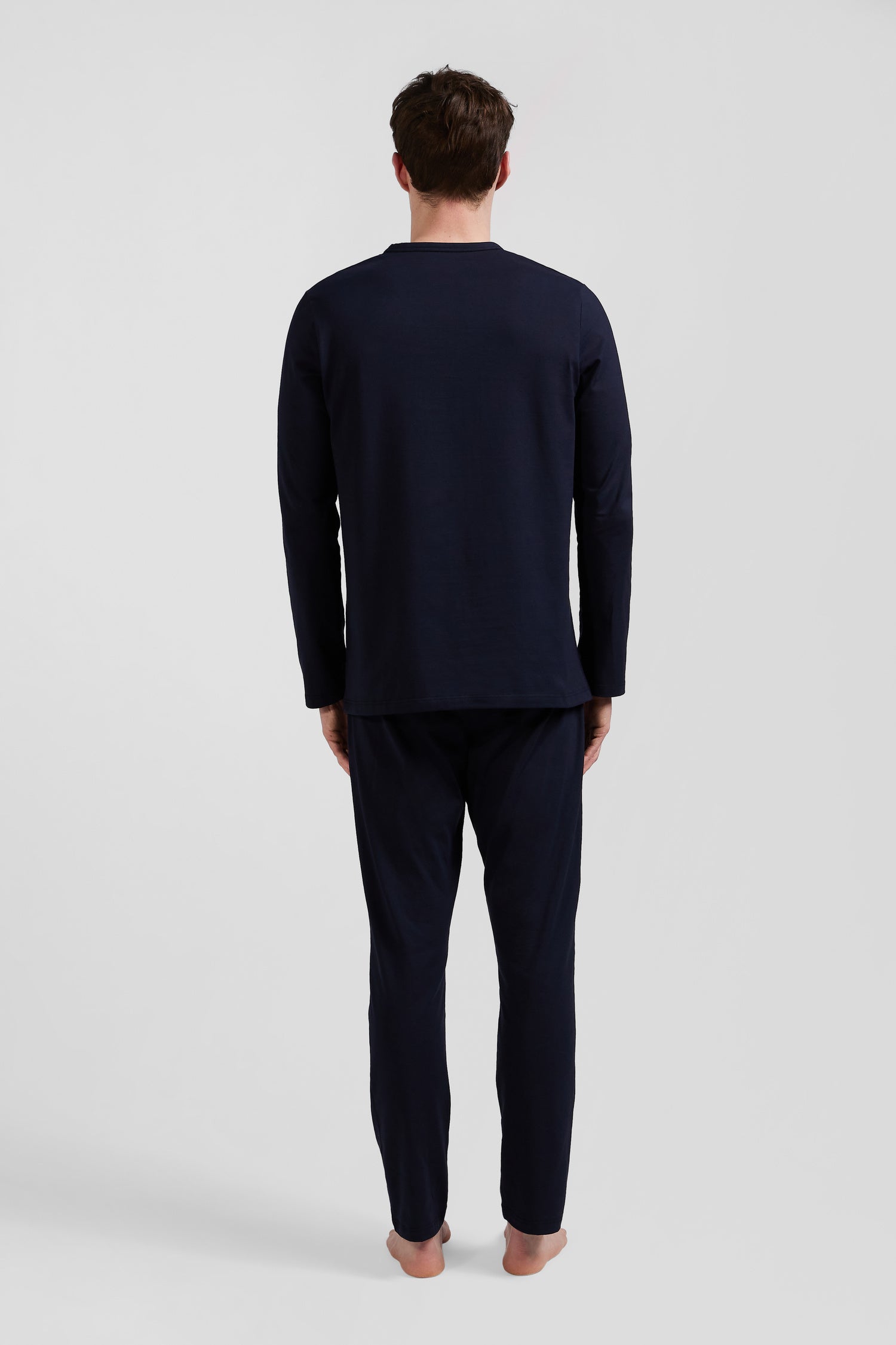 This navy blue pajama set features a long-sleeved T-shirt brightened up by contrasting piping on the chest. Pants with a branded elasticated waistband provide comfort and support for your nights of sleep and weekend relaxation.