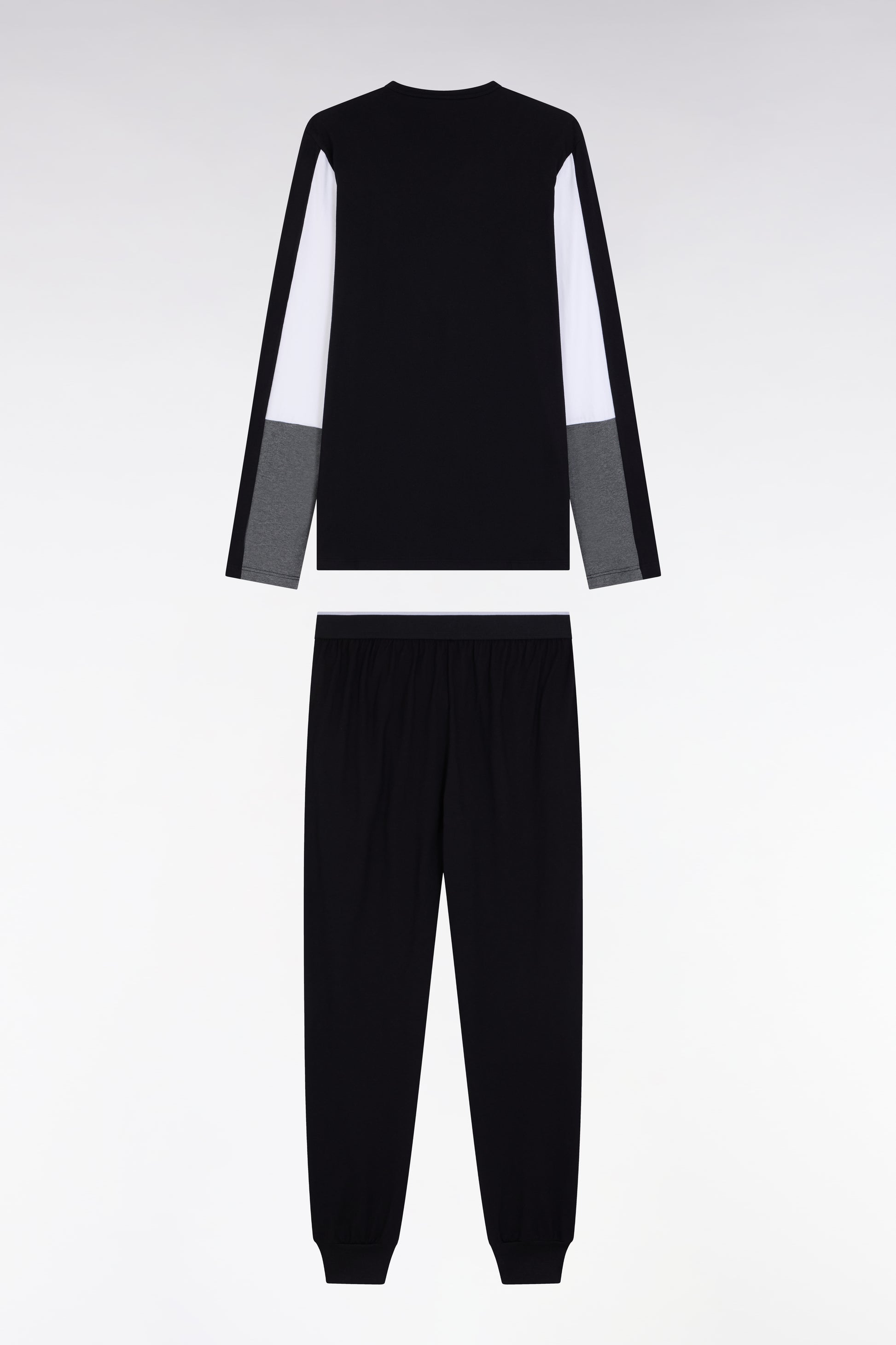 Long pyjamas in grey colorblock cotton jersey - A SHOOTER