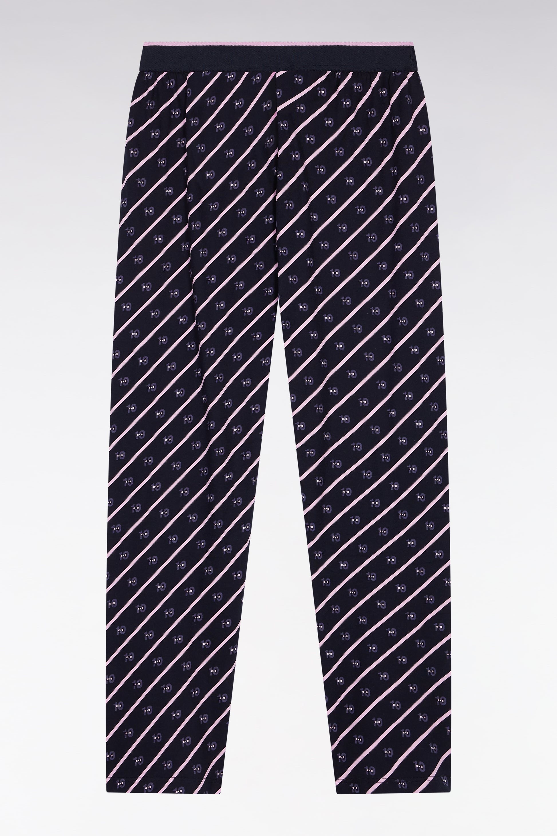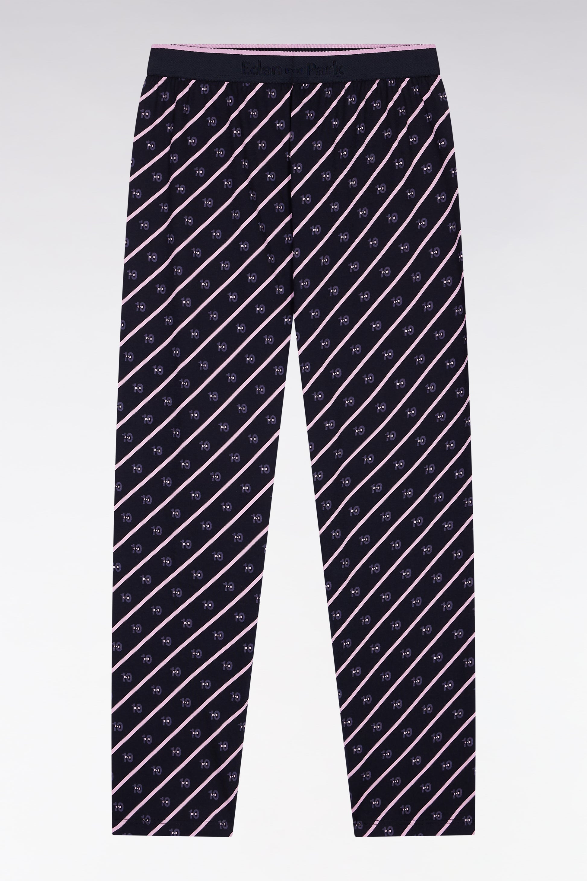 A graphic signature of the house, the bow tie is featured on the pants of these long pyjamas in a repeated pattern emblematic of our sport-chic wardrobe. Paired with a plain navy round-neck T-shirt, this comfortable, on-trend pyjama set perfectly embodies the elegance of Eden Park's nightwear.