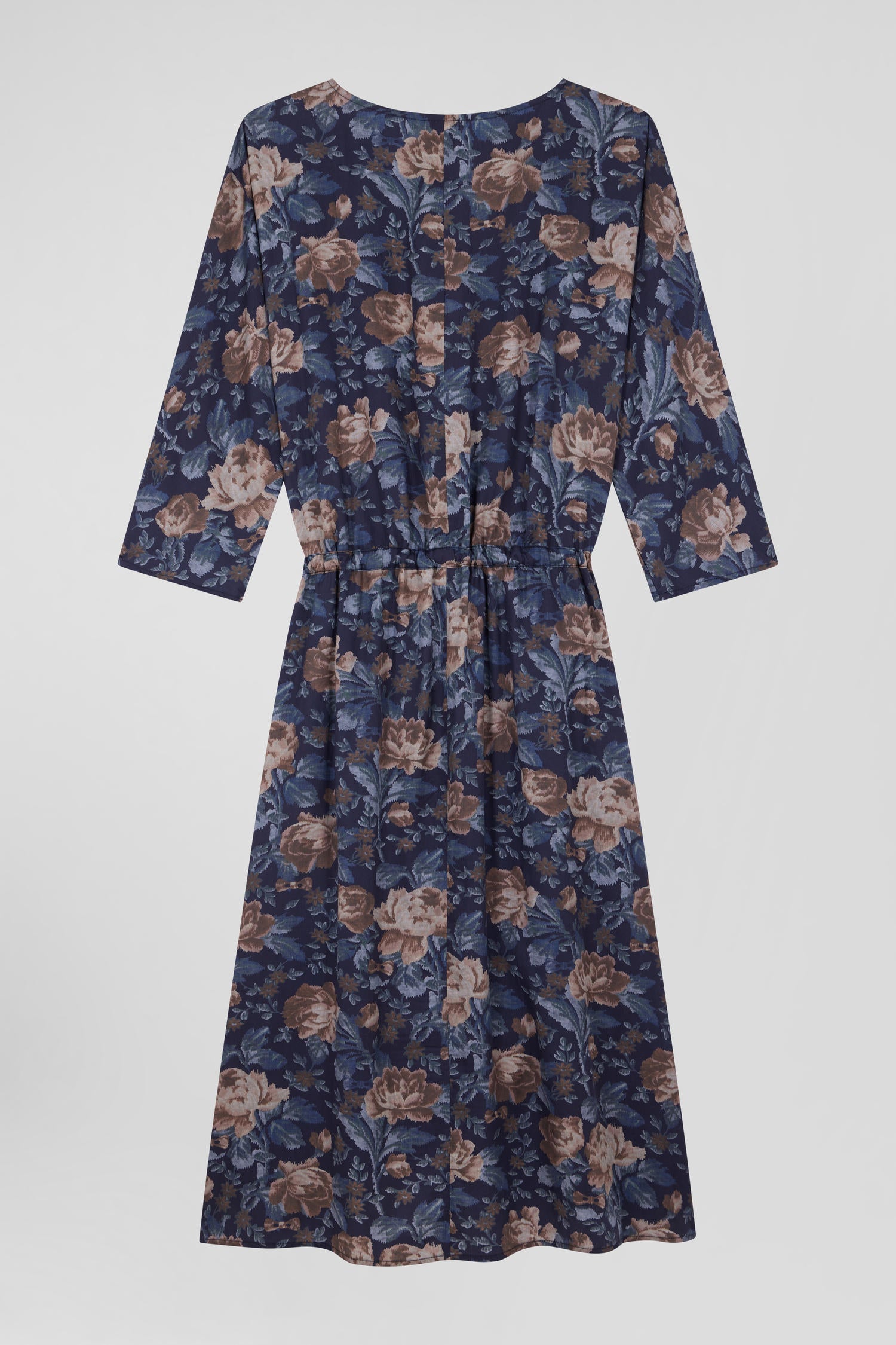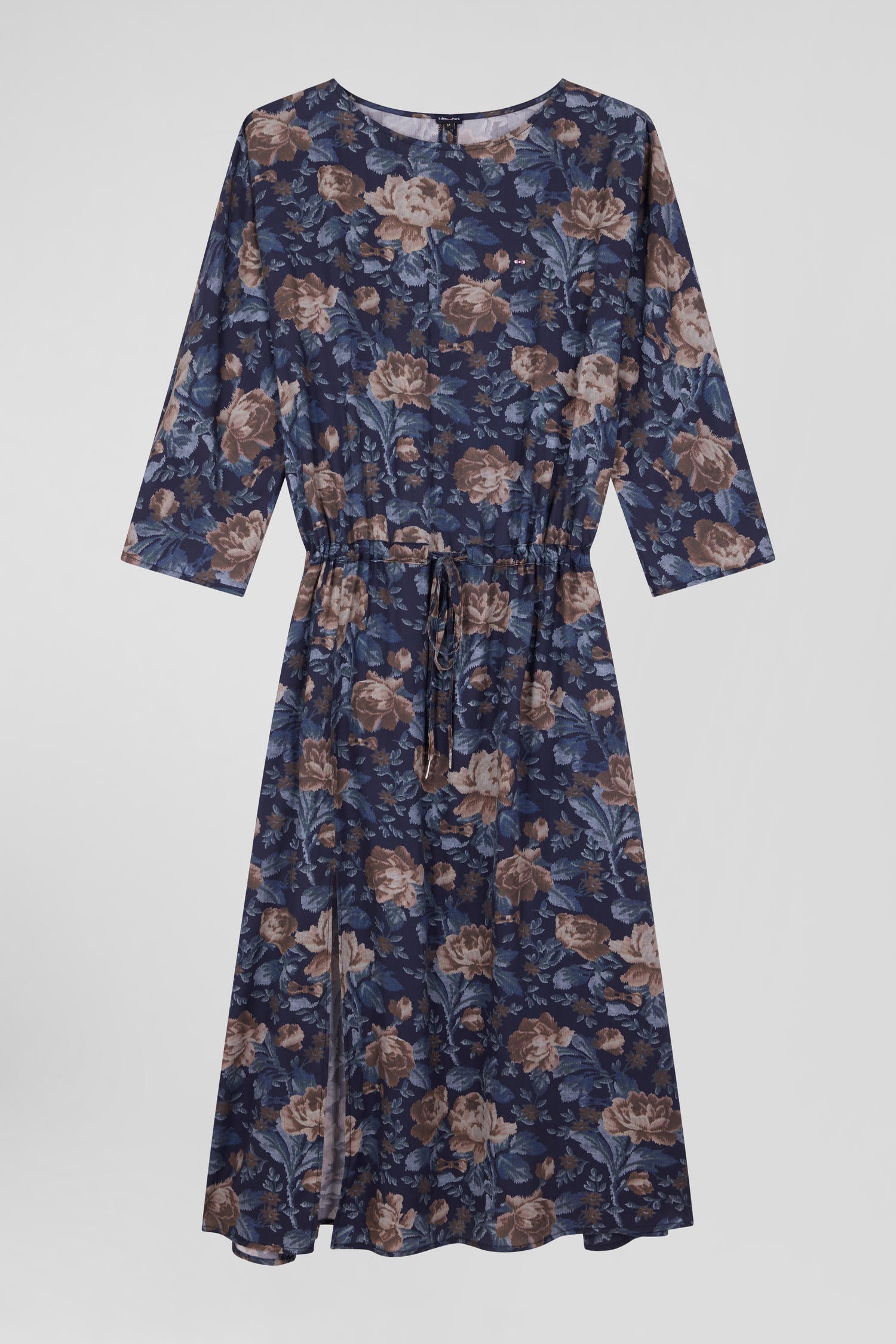 With 3/4-length sleeves, a round neckline that clears the head and an elegant drawstring waist, this dress enhances the feminine silhouette for any occasion. This blue dress features a wide, vintage-inspired floral print and a slit up the leg. With sandals or a pair of sneakers, this lyocell dress is a promise of comfort and elegance.