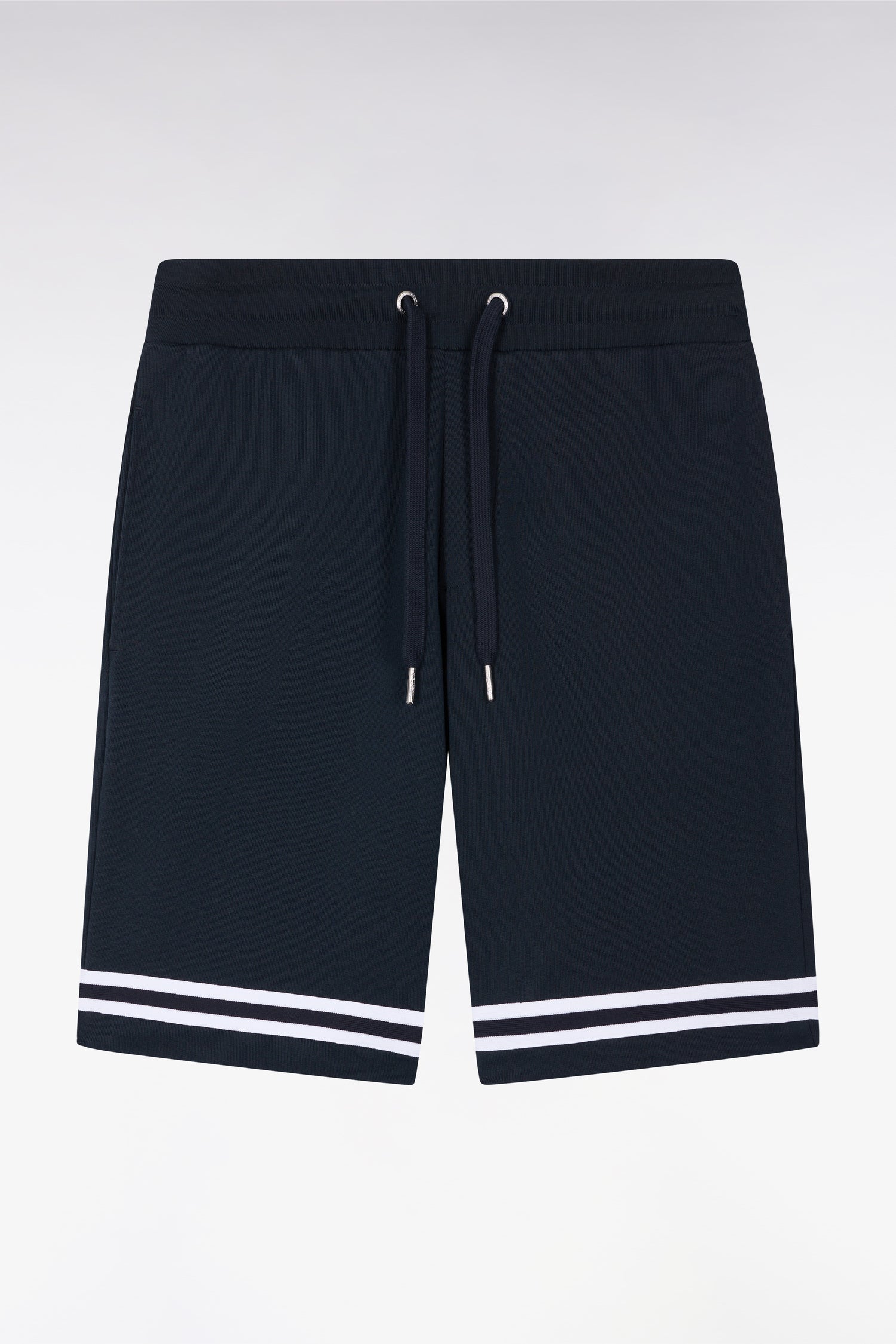 Short en molleton marine à bordures de jambe rayées