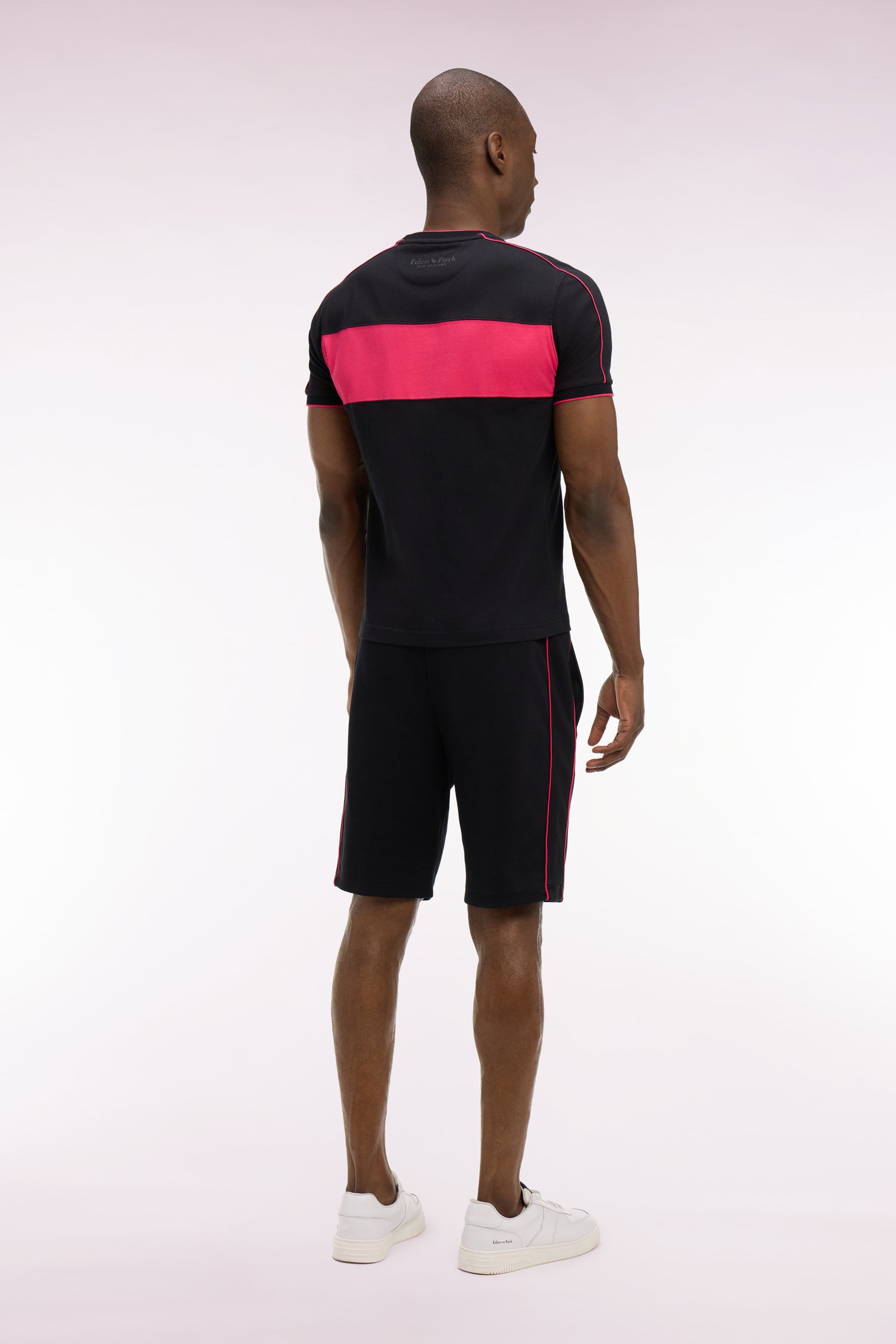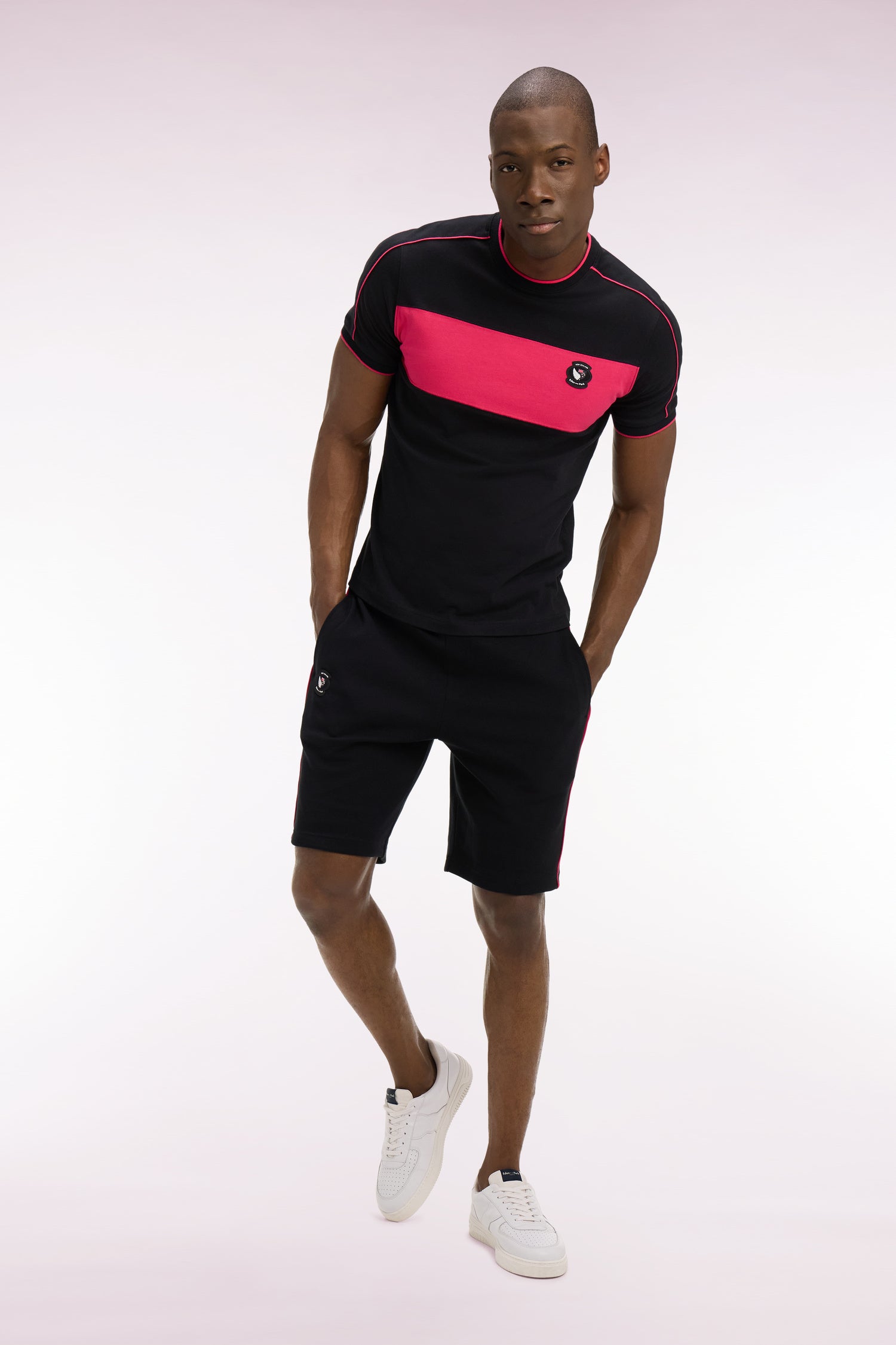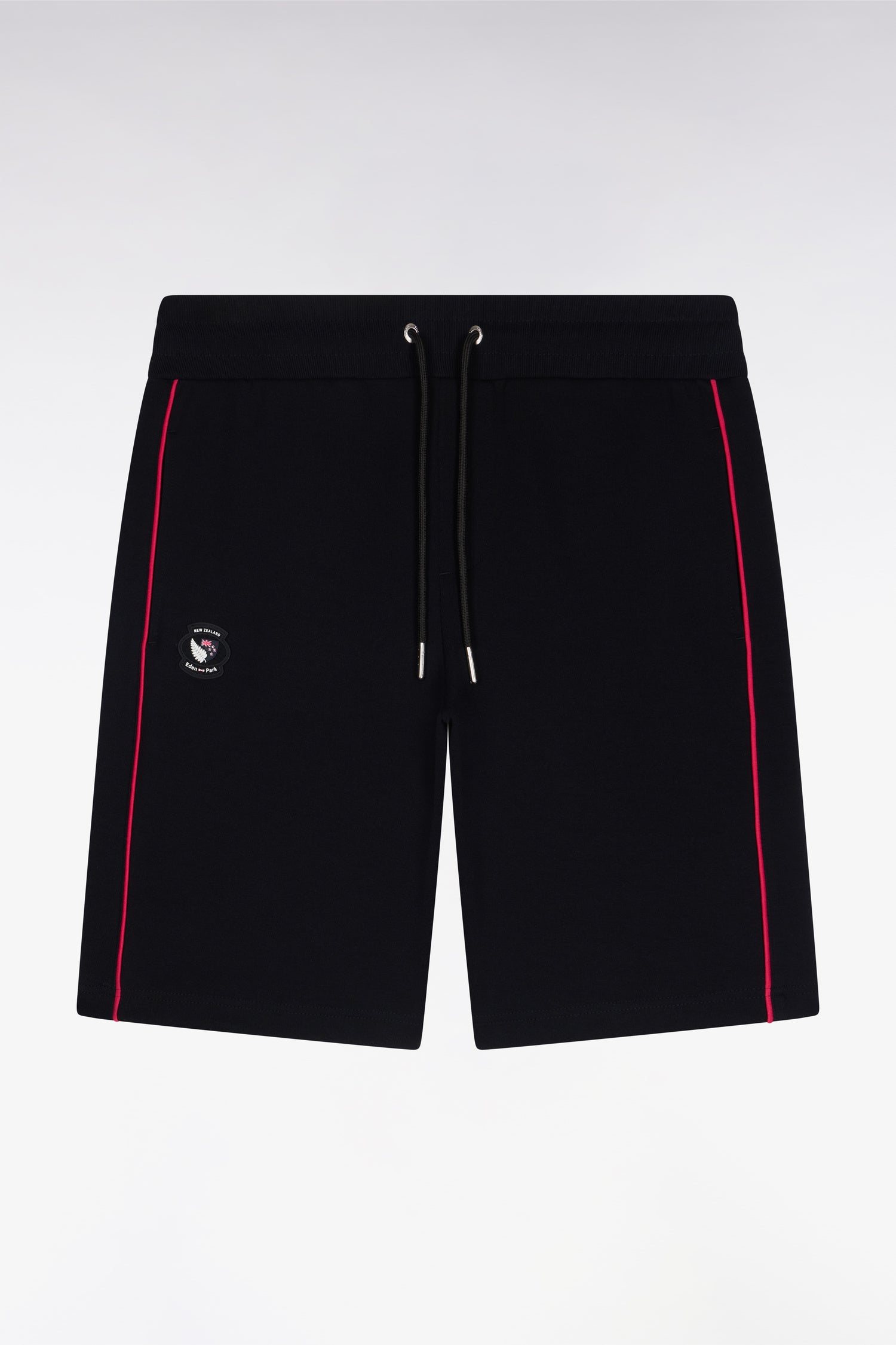 Associez ce short pour homme de la collection rugby Nouvelle-Zélande à son sweatshirt zippé coordonné pour un style plein d’allure, de la Maison jusqu'au stade. En molleton interlock noir ou rose, ce short à coupe droite est rehaussé d’un écusson en gomme 3D et de cordons de serrage siglés, clin d'œil à l’héritage rugby de notre Maison. Ses découpes le long des jambes sont soulignées d'un passepoil contrasté qui dynamise l'allure.