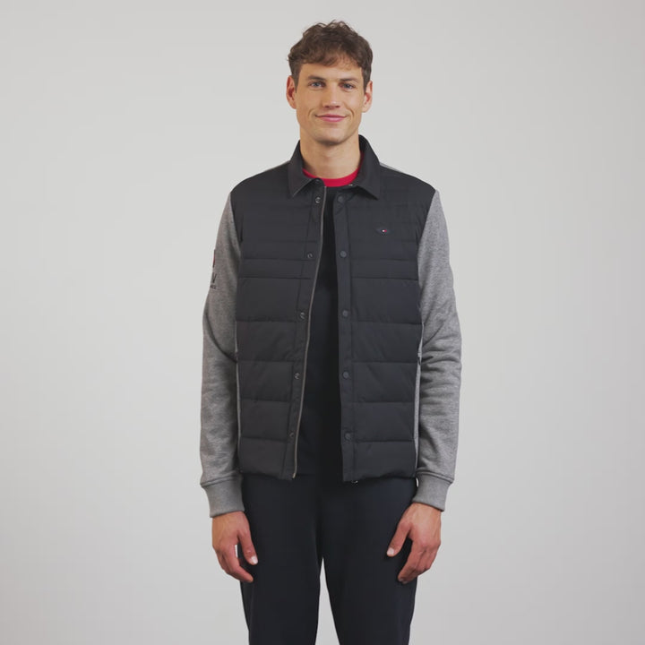 • Zipped fastening under press-stud placket