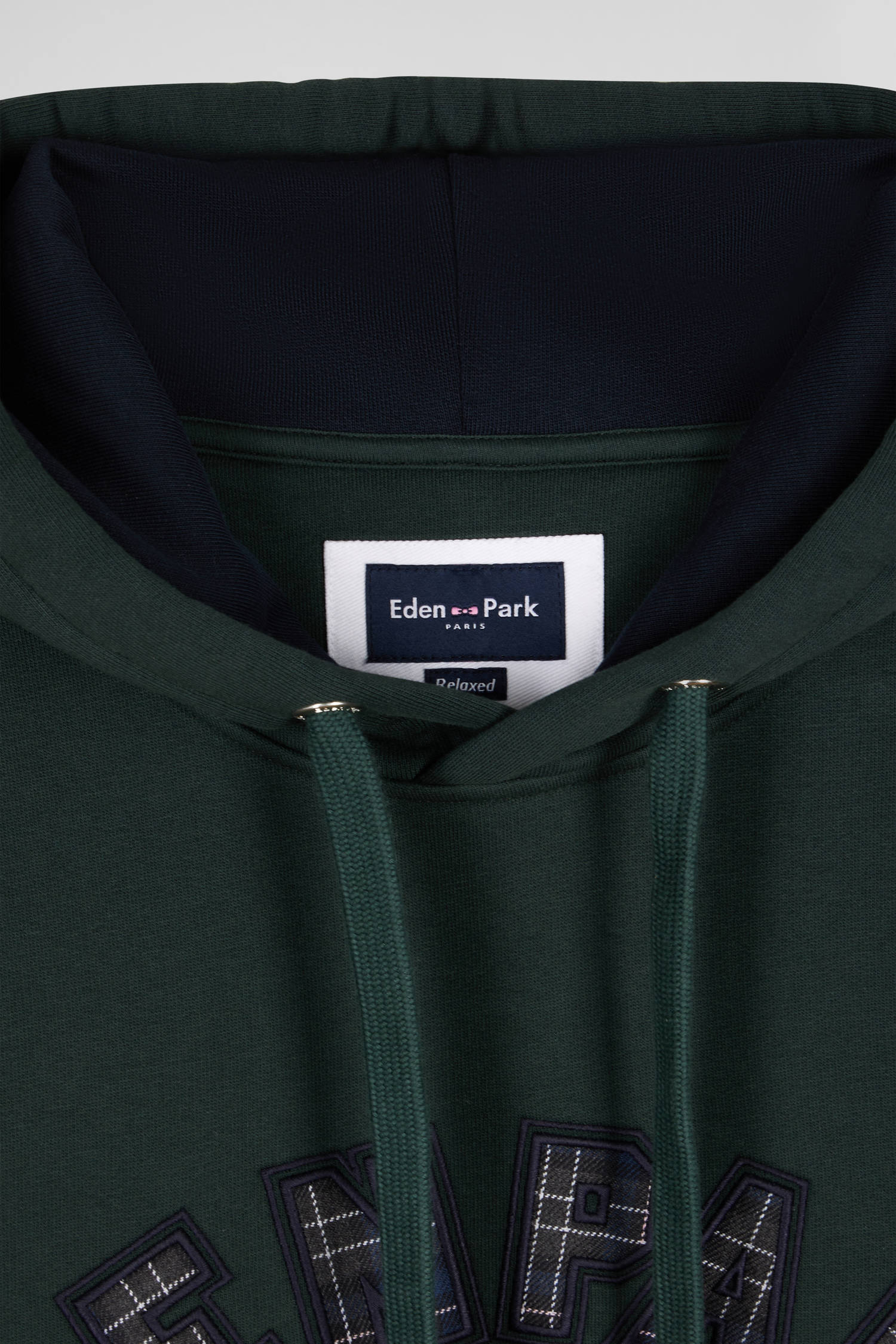 Enjoy unparalleled comfort and style with our cotton-blend sweatshirt, perfect for your moments of relaxation. Featuring a practical kangaroo pocket, this fleece sweatshirt is accented with iconic Eden Park lettering for a touch of authenticity. A large bow tie adorns the hood, adding a modern detail typical of our Maison. Ideal for a stylish casual look, this hoodie perfectly combines functionality and French Flair elegance.