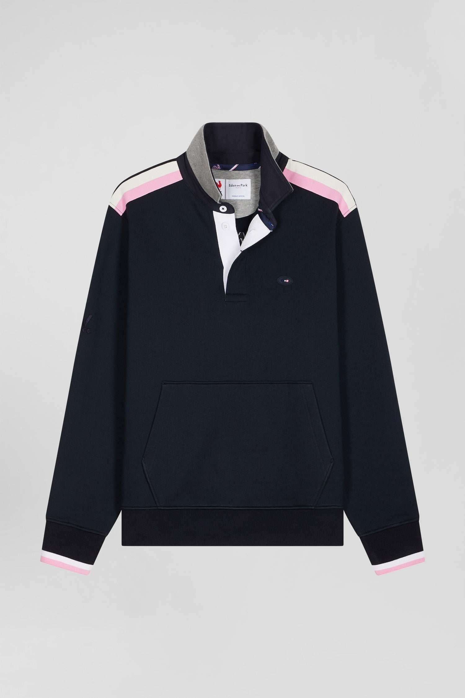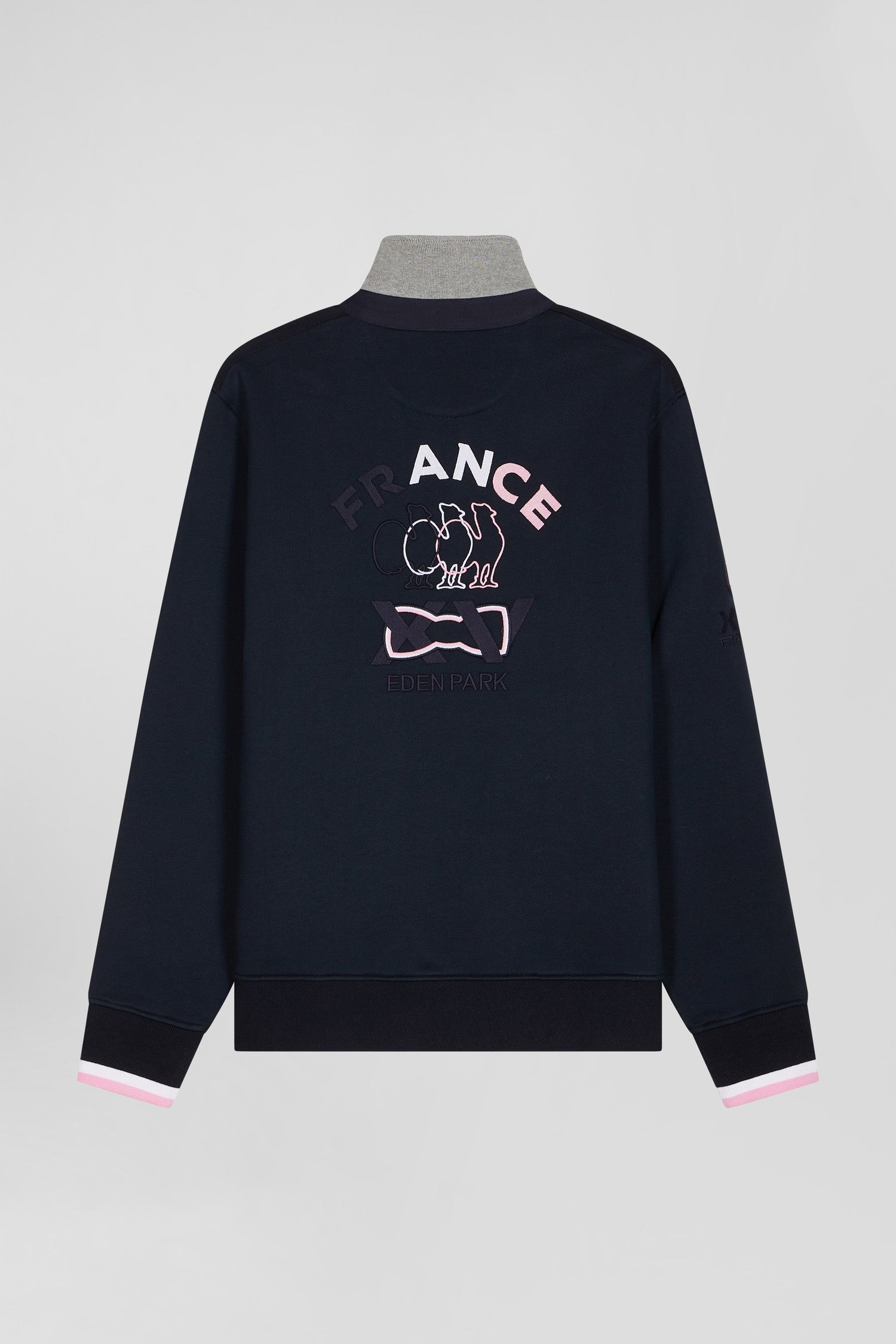 Regular navy blue XV de France cotton sweatshirt with rugby shirt collar