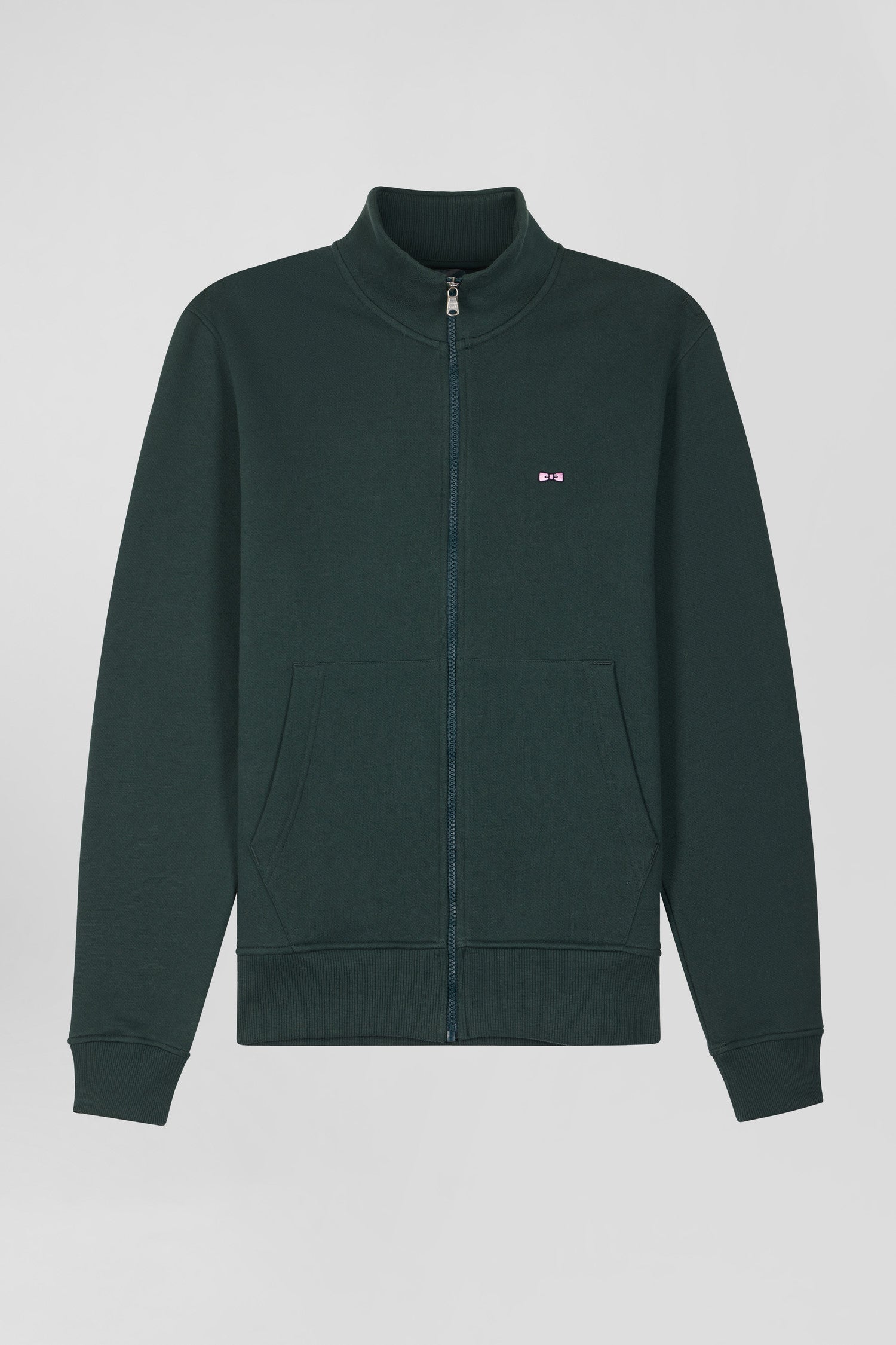 Regular green brushed cotton fleece sweatshirt with high top collar