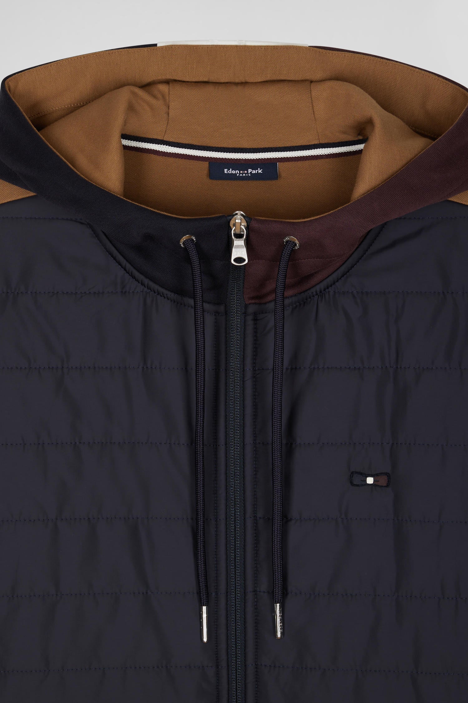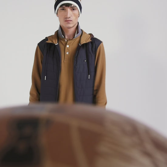 Two-material zip-up sweatshirt with quilted trim in hazelnut and navy Regular fit
