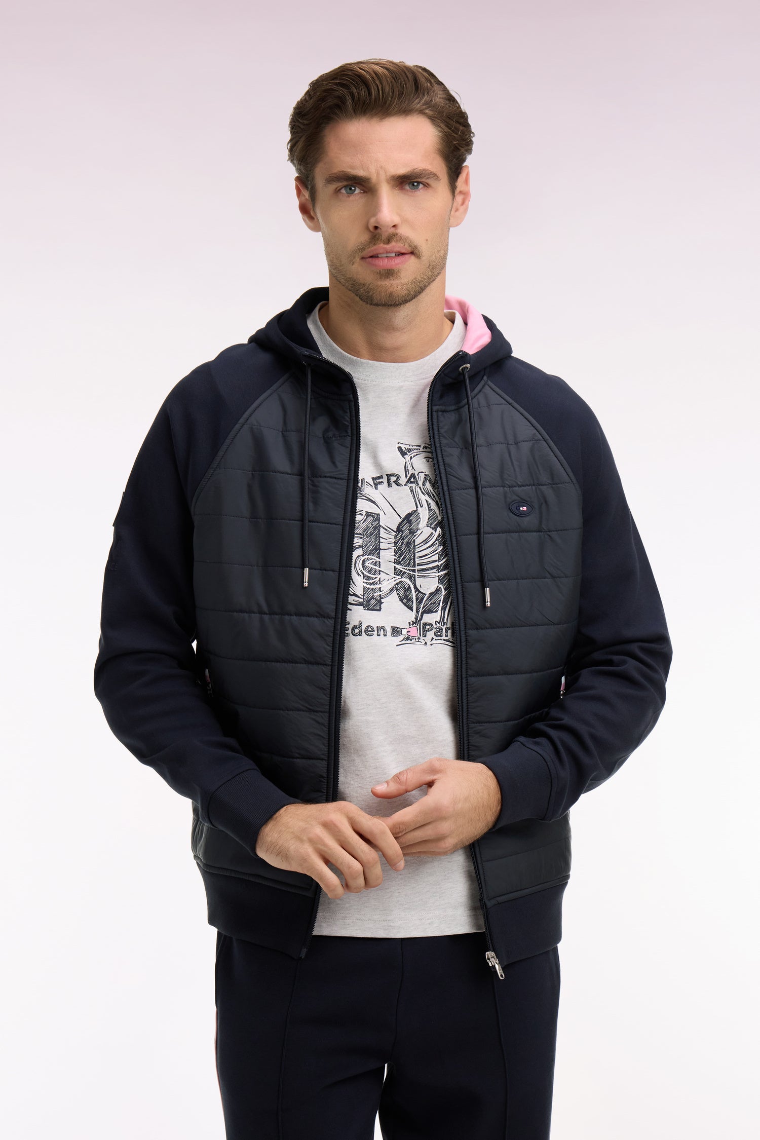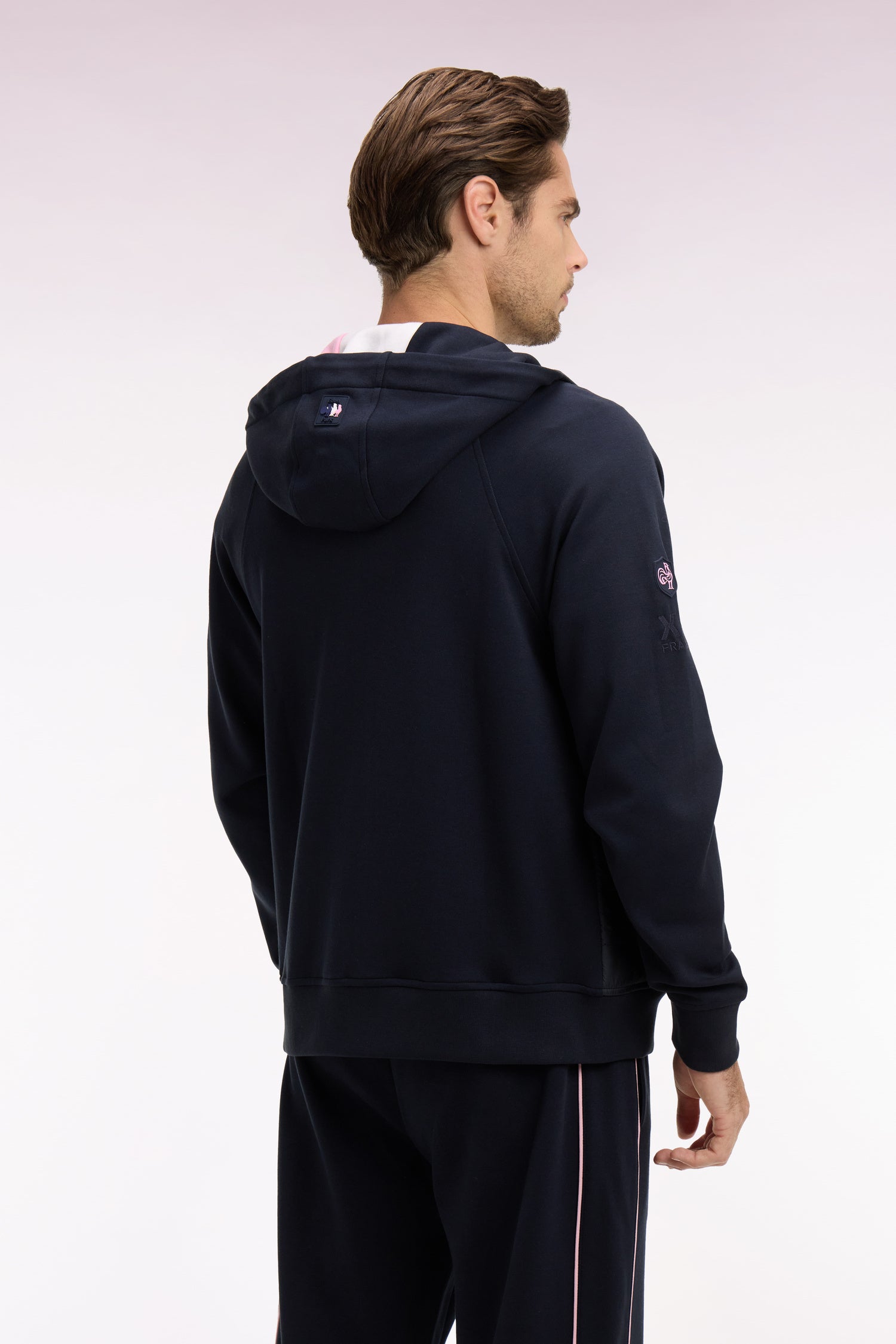 Sweatshirt zippé XV de France à capuche en molleton à parmenture matelassée marine coupe regular