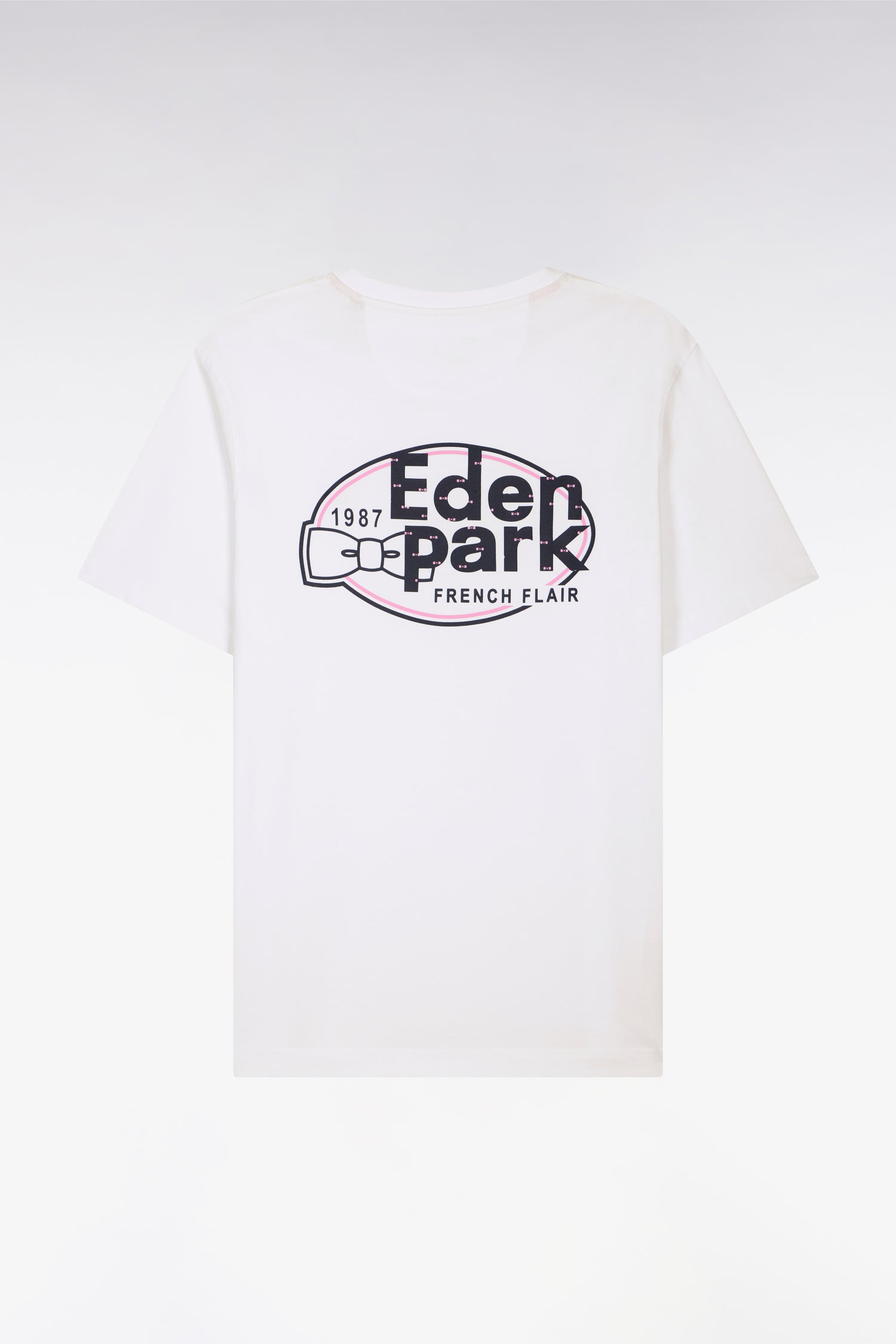 À l’arrière, ce T-shirt révèle une sérigraphie graphique exclusive, clin d’œil aux codes emblématiques de notre Maison. Confectionné en jersey de coton doux, il offre un porté confortable et une silhouette casual chic maîtrisée grâce à ses bords-côtes soulignant son col rond.