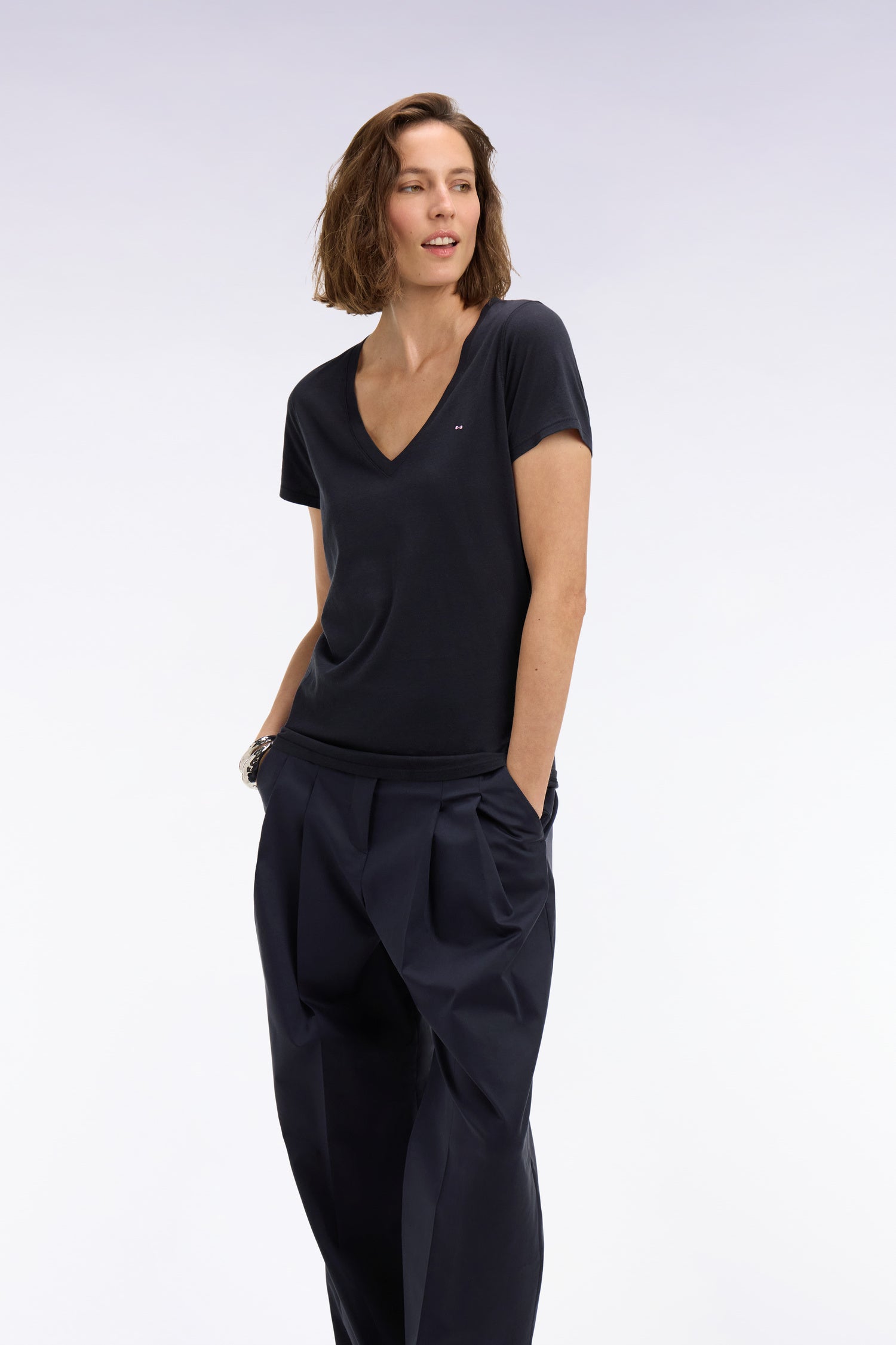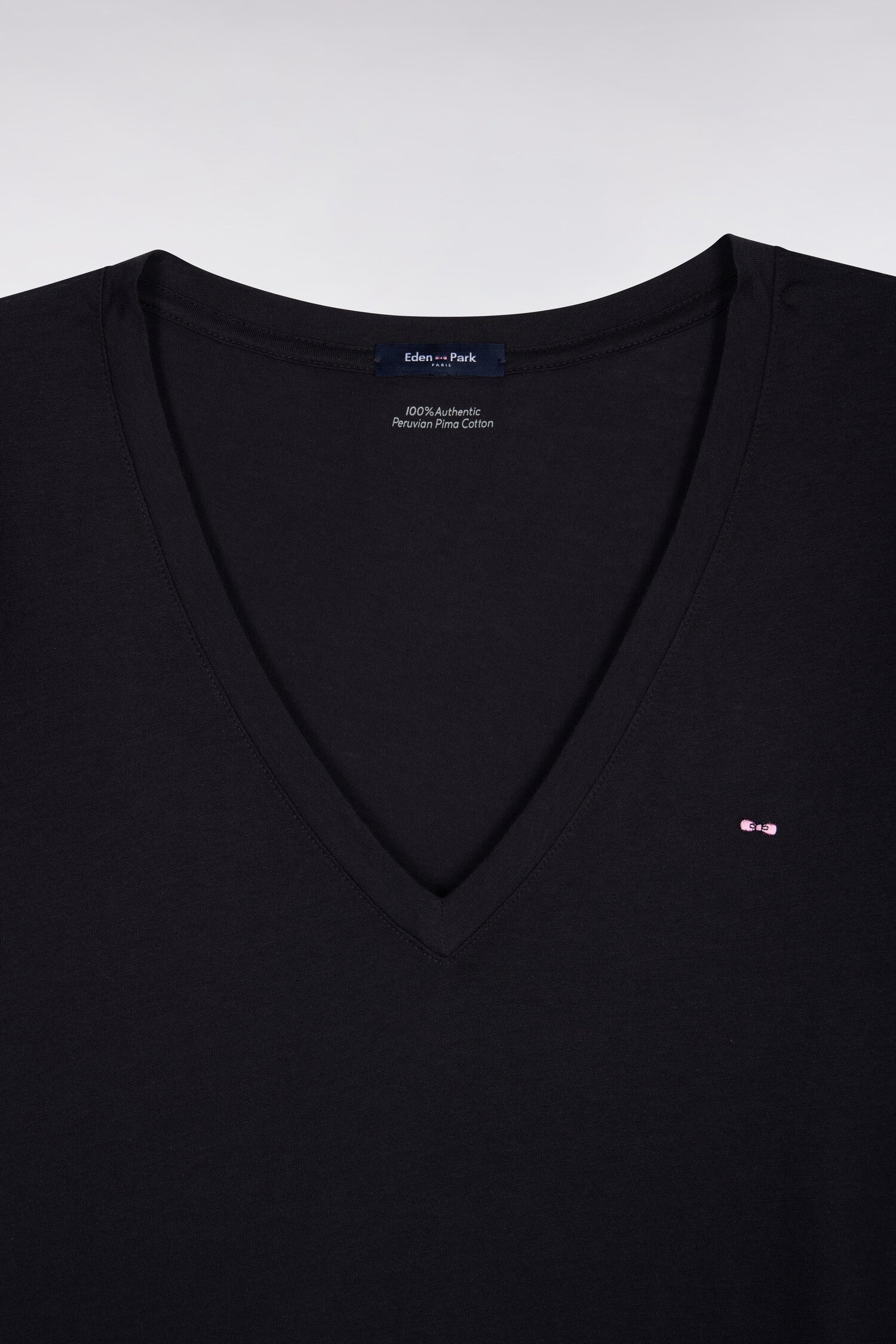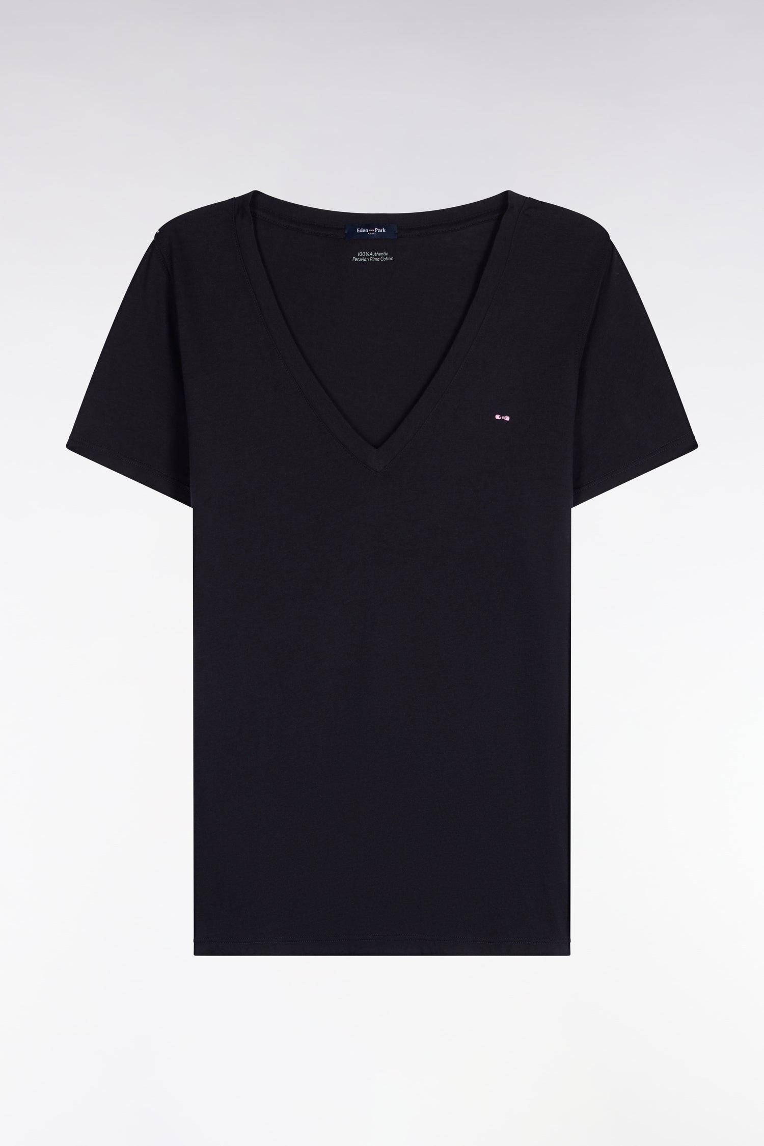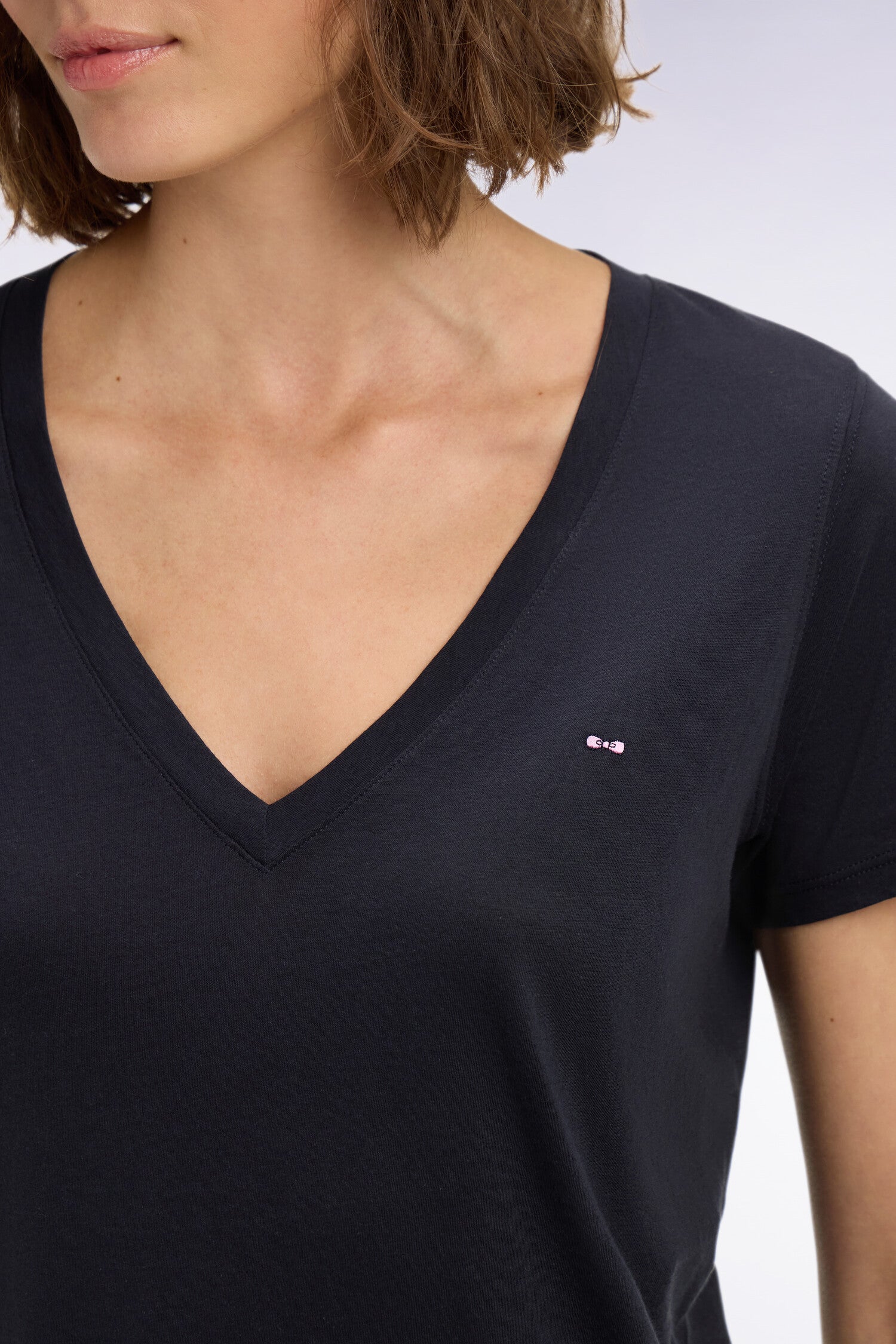 T-shirt à manches courtes col V en coton Pima marine coupe regular