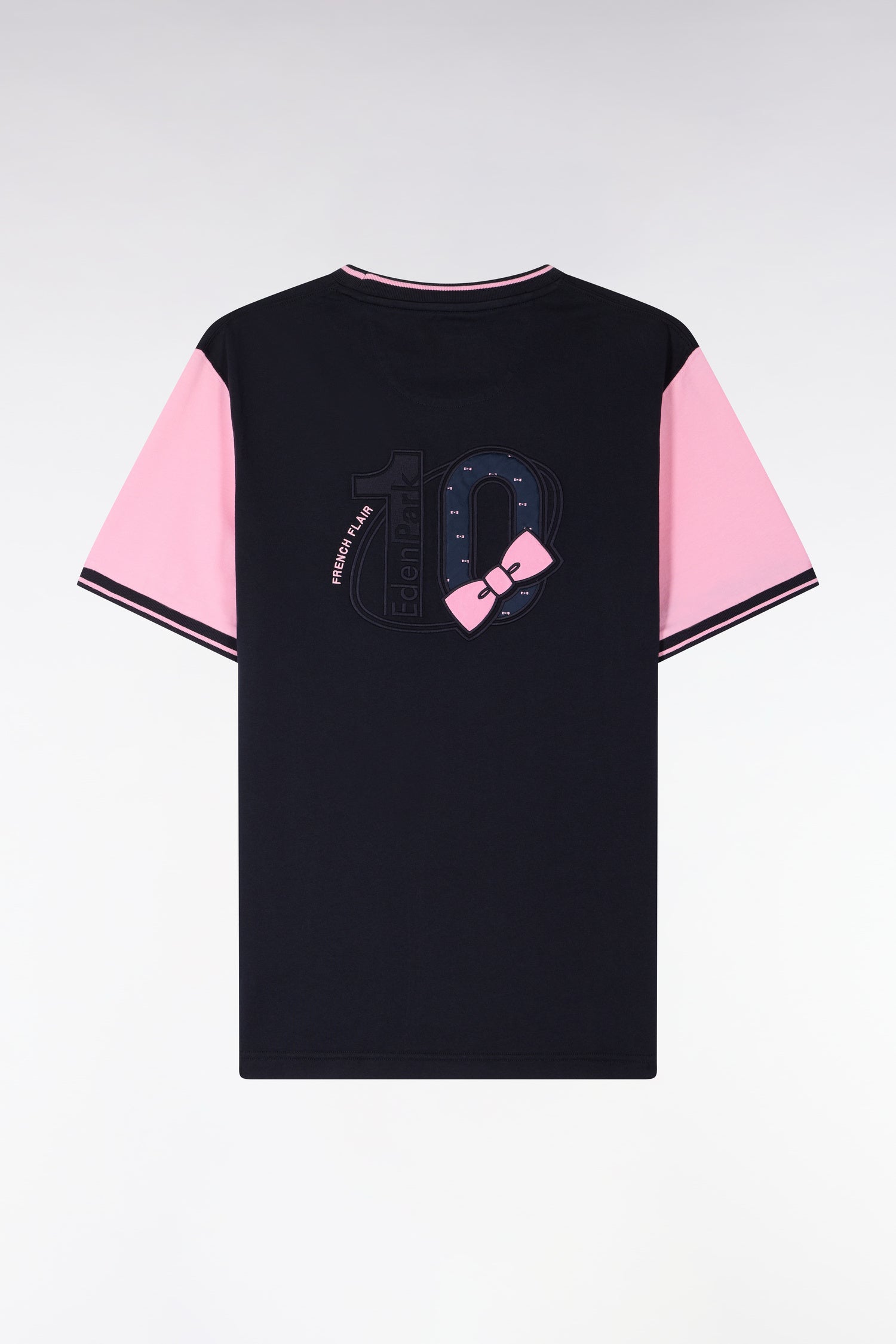 T-shirt à manches courtes en coton marine manches roses coupe regular