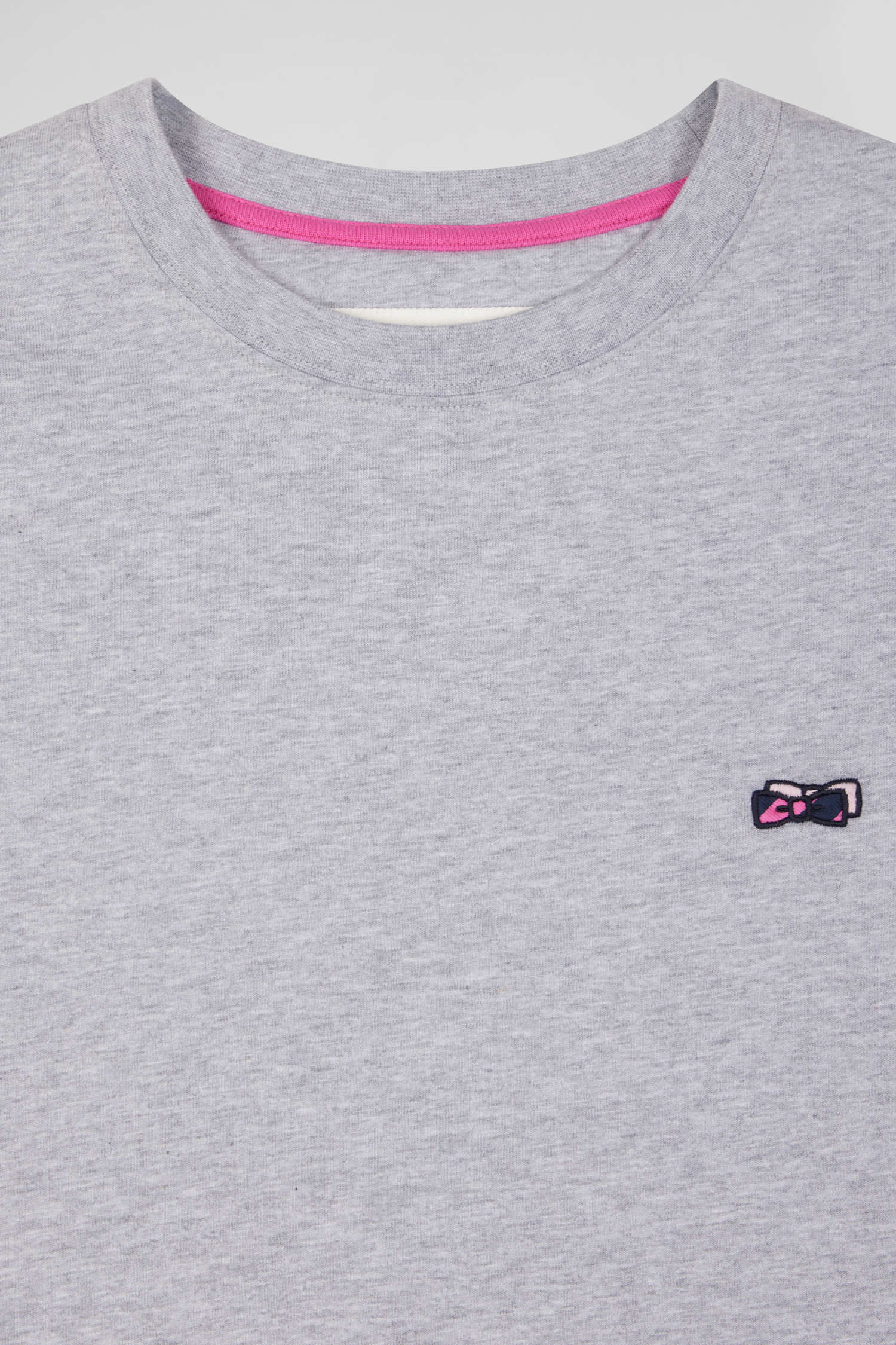 Regular grey short-sleeved cotton T-shirt with back embroidery