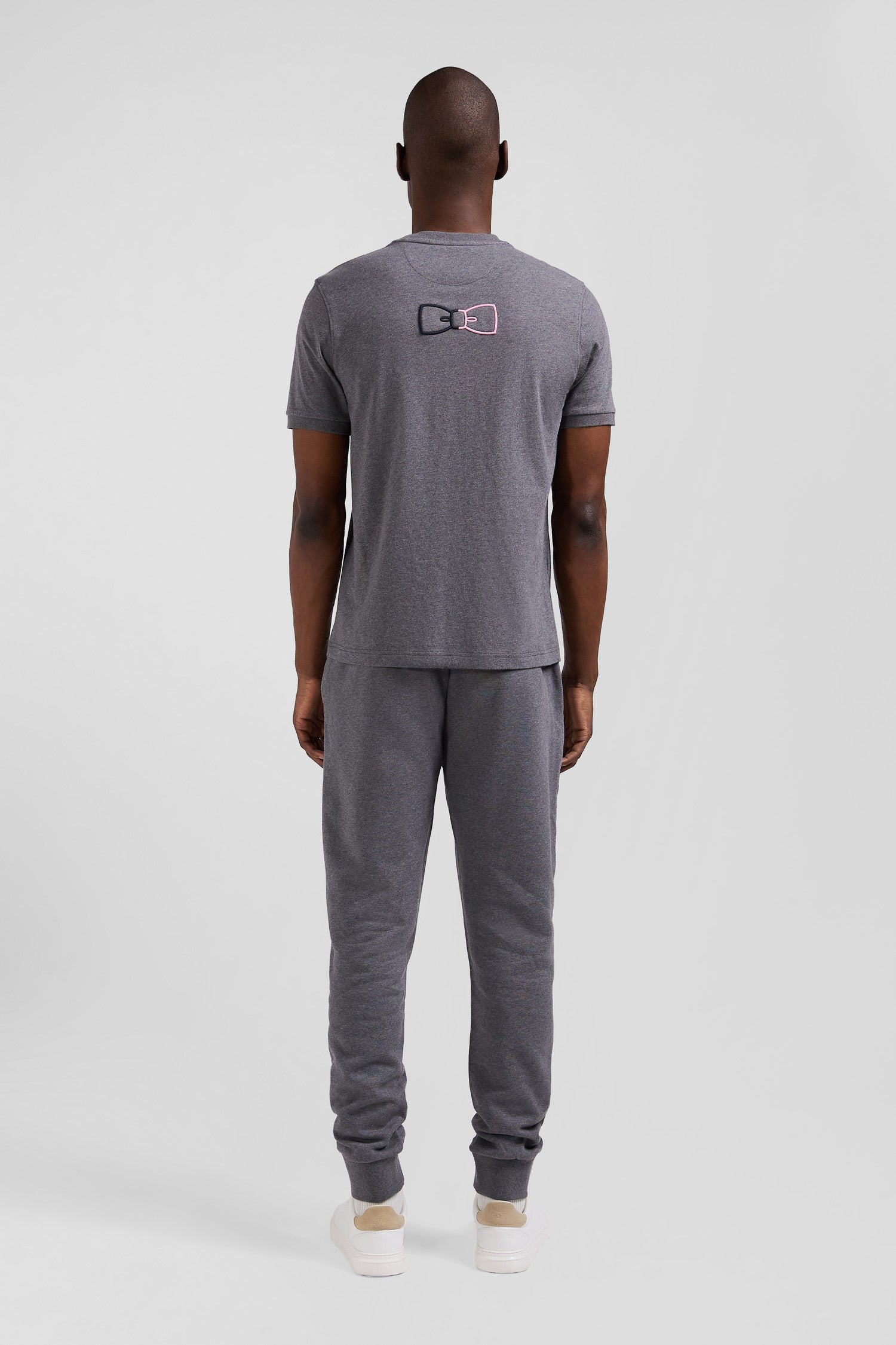 Regular grey short-sleeved cotton T-shirt with emblem embroidery