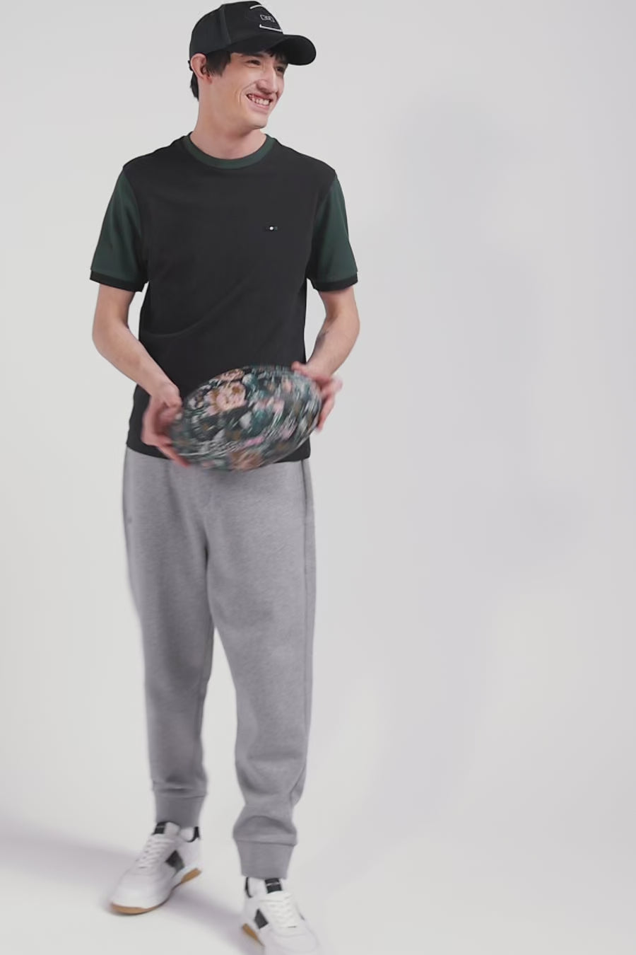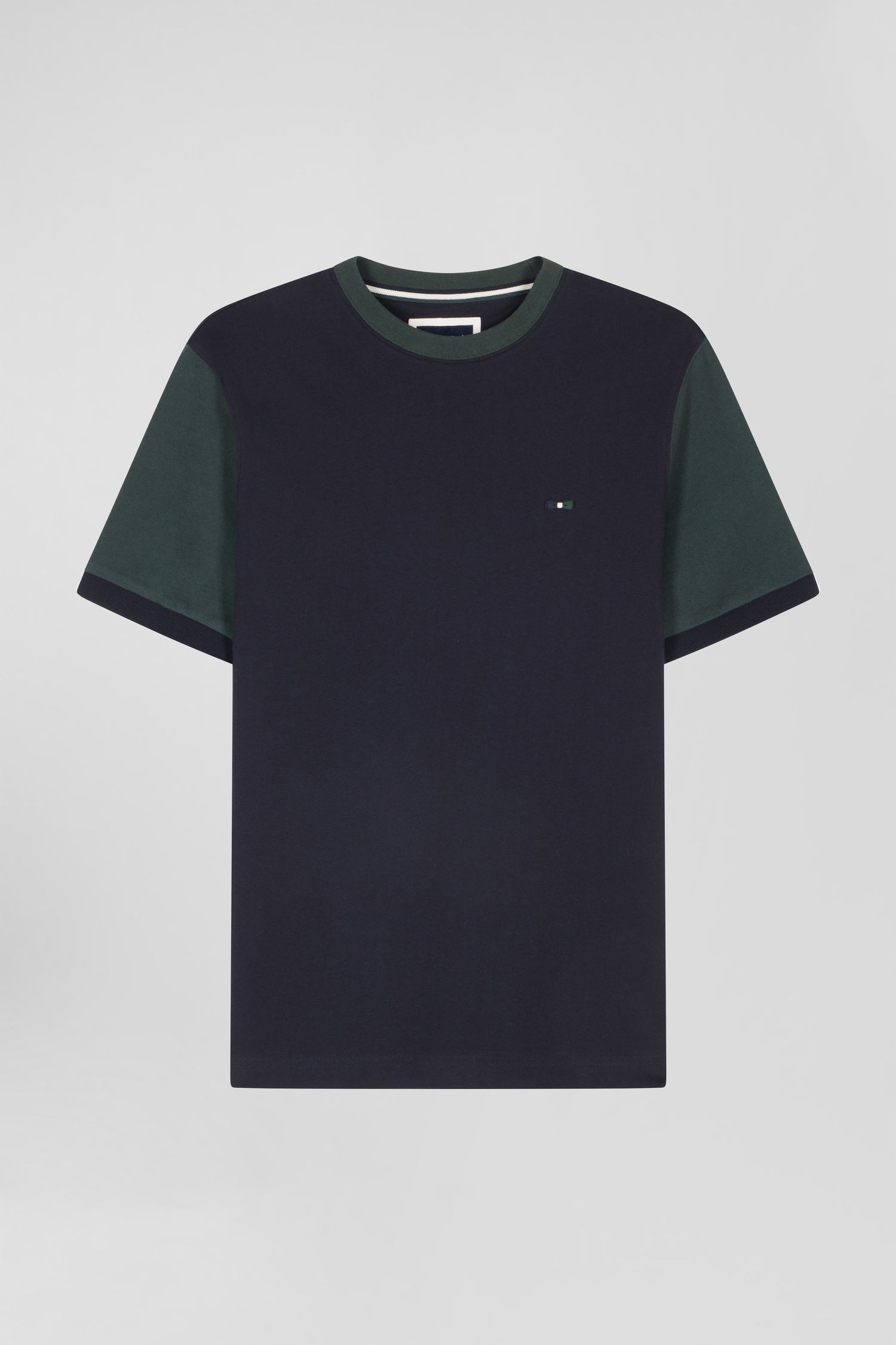 Regular green cotton T-shirt with short contrasting sleeves