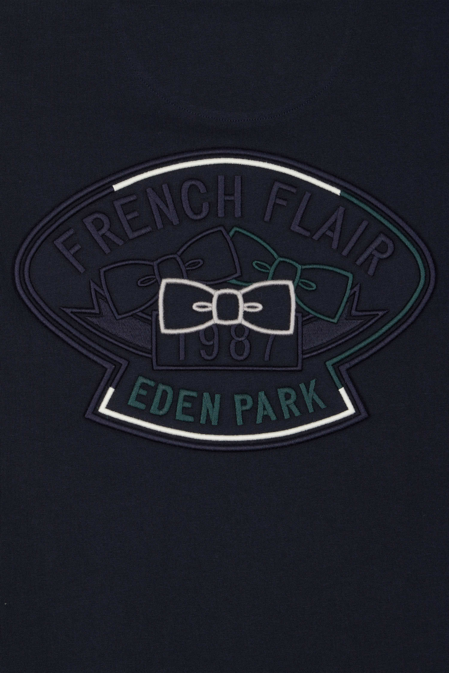 • Embroidered chest bow tie emblem
