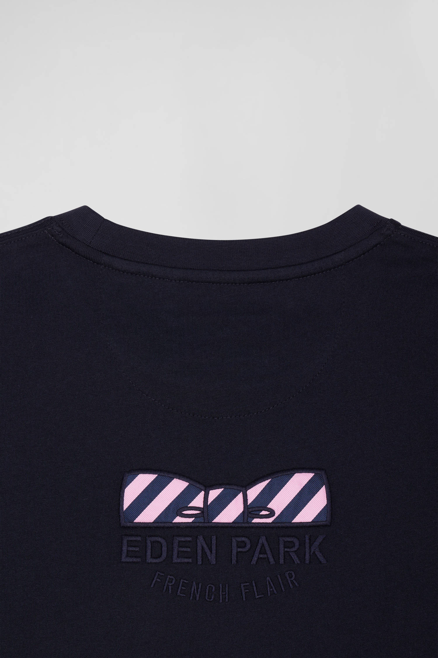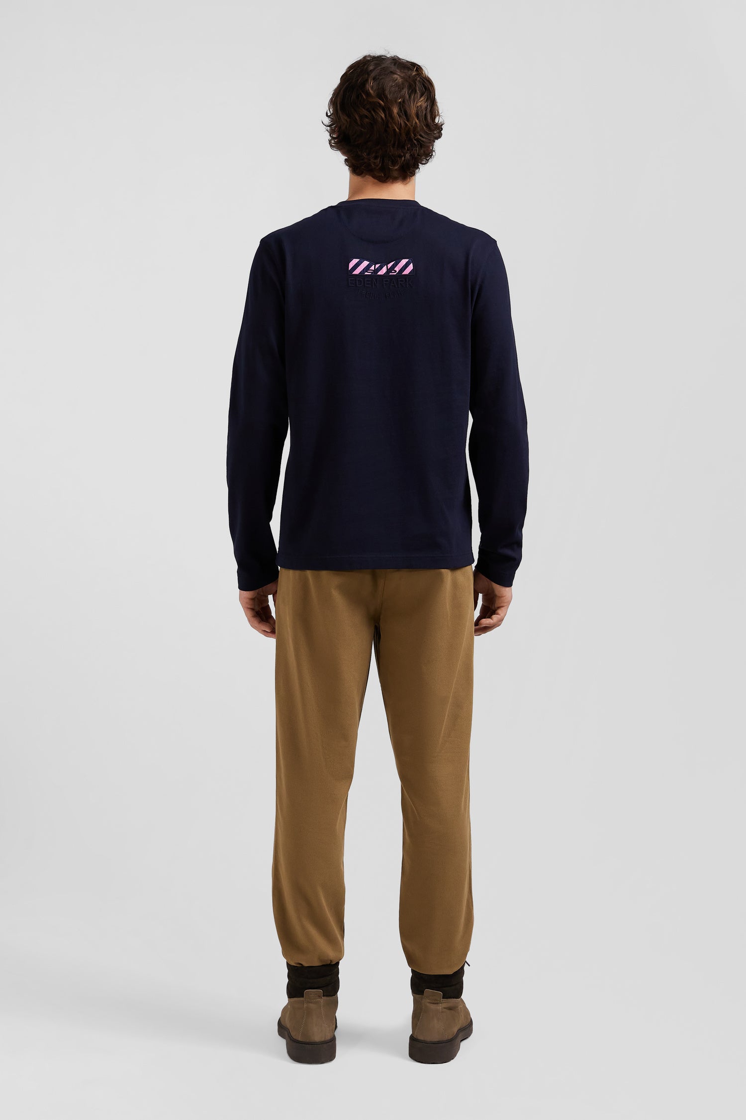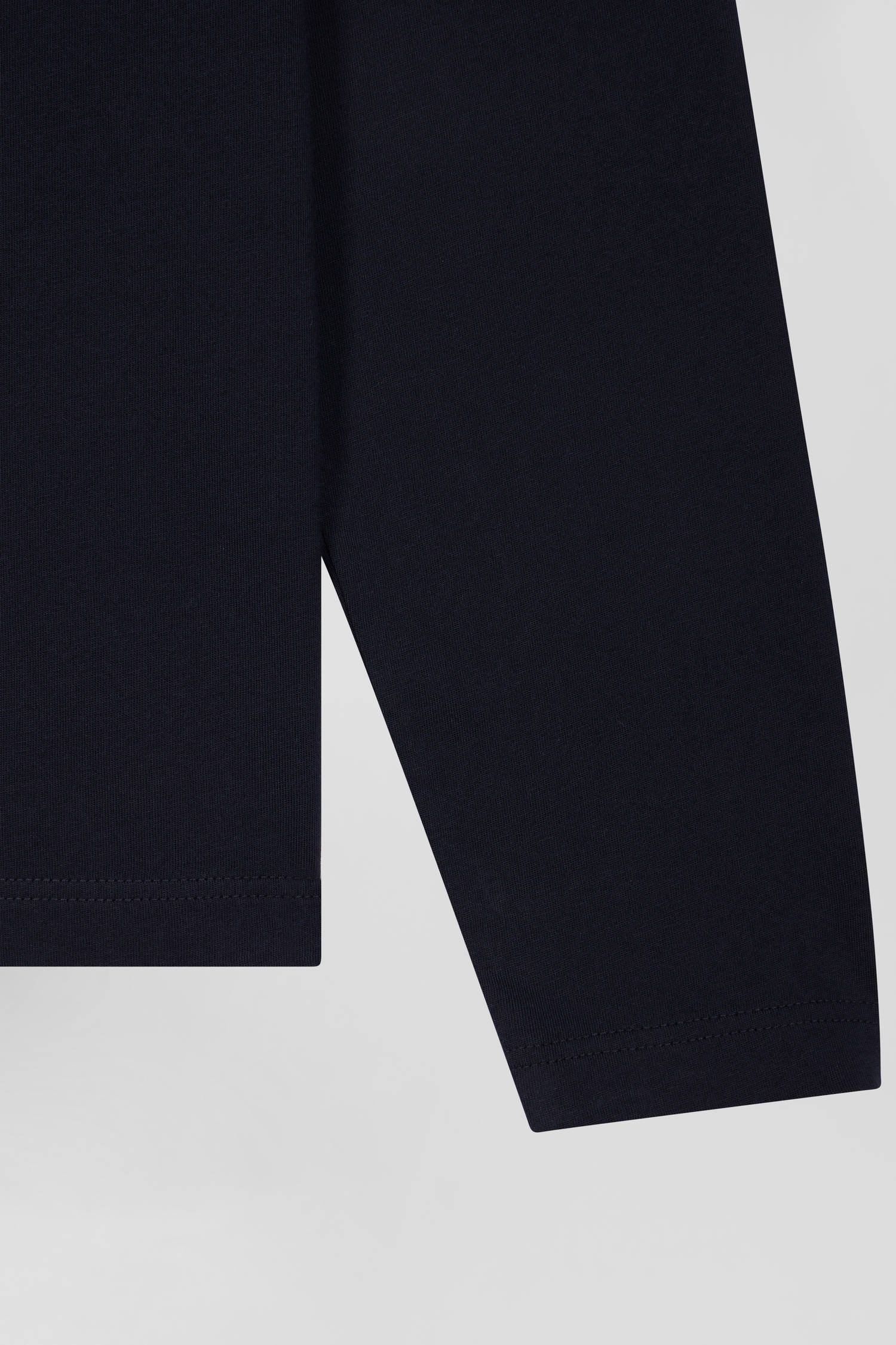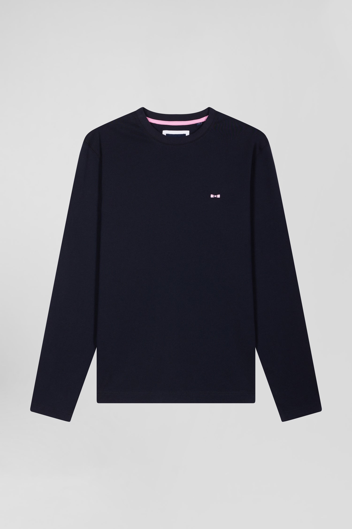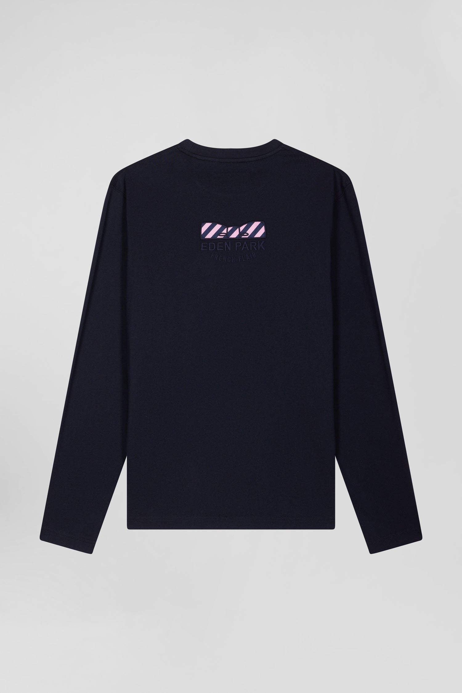 Regular navy blue long-sleeved cotton T-shirt with back embroidery