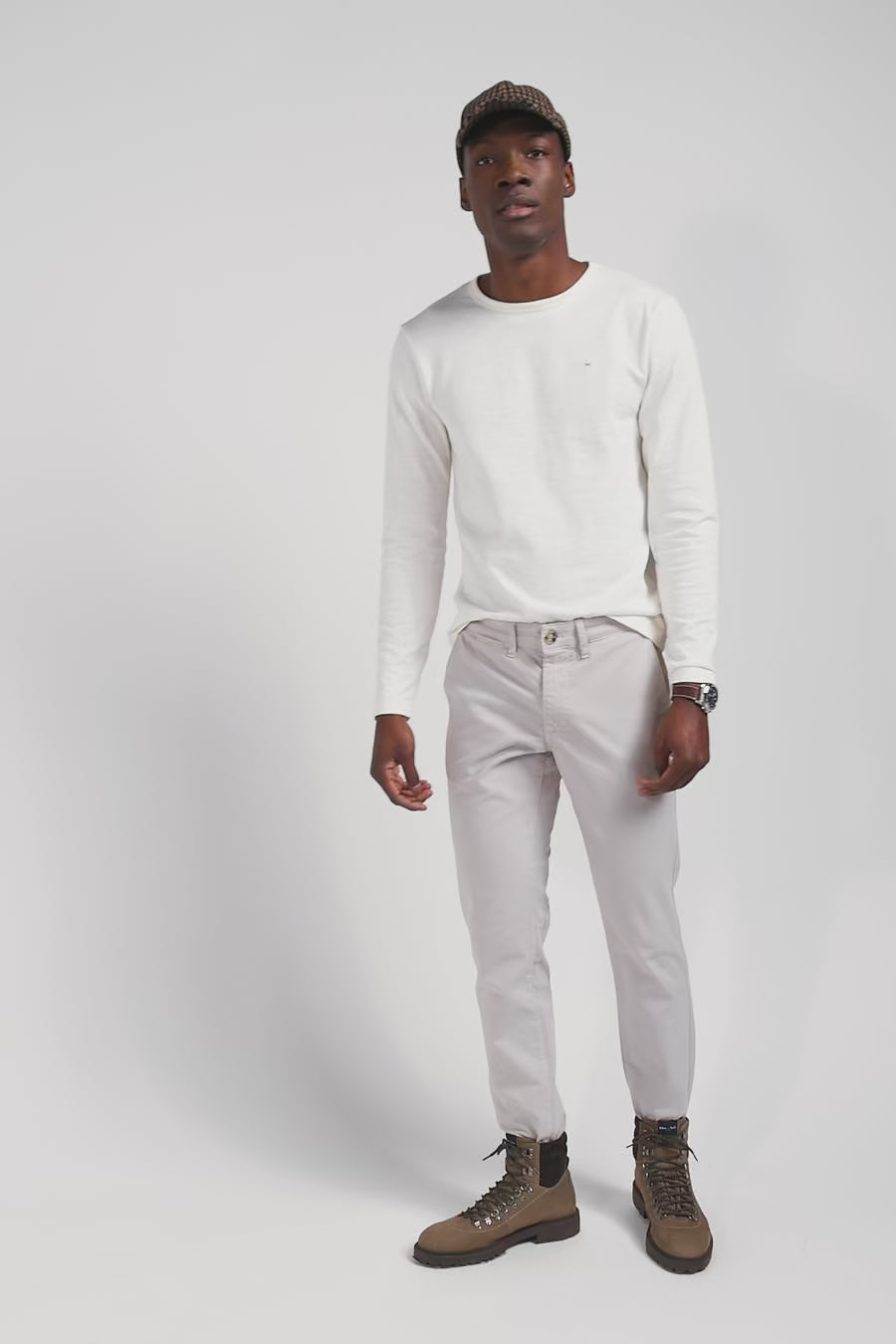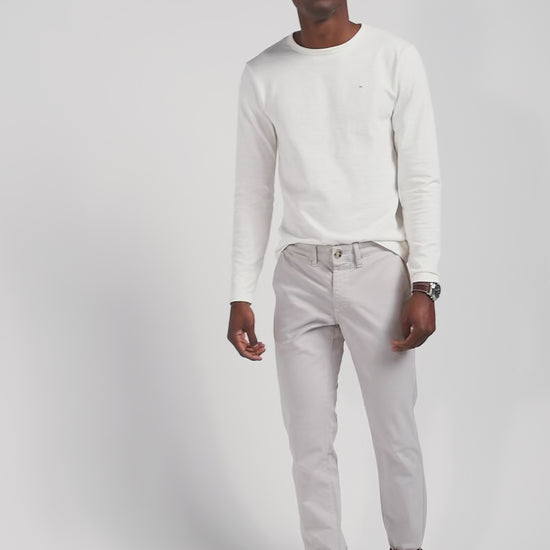 Slim plain beige chino trousers in stretch cotton
