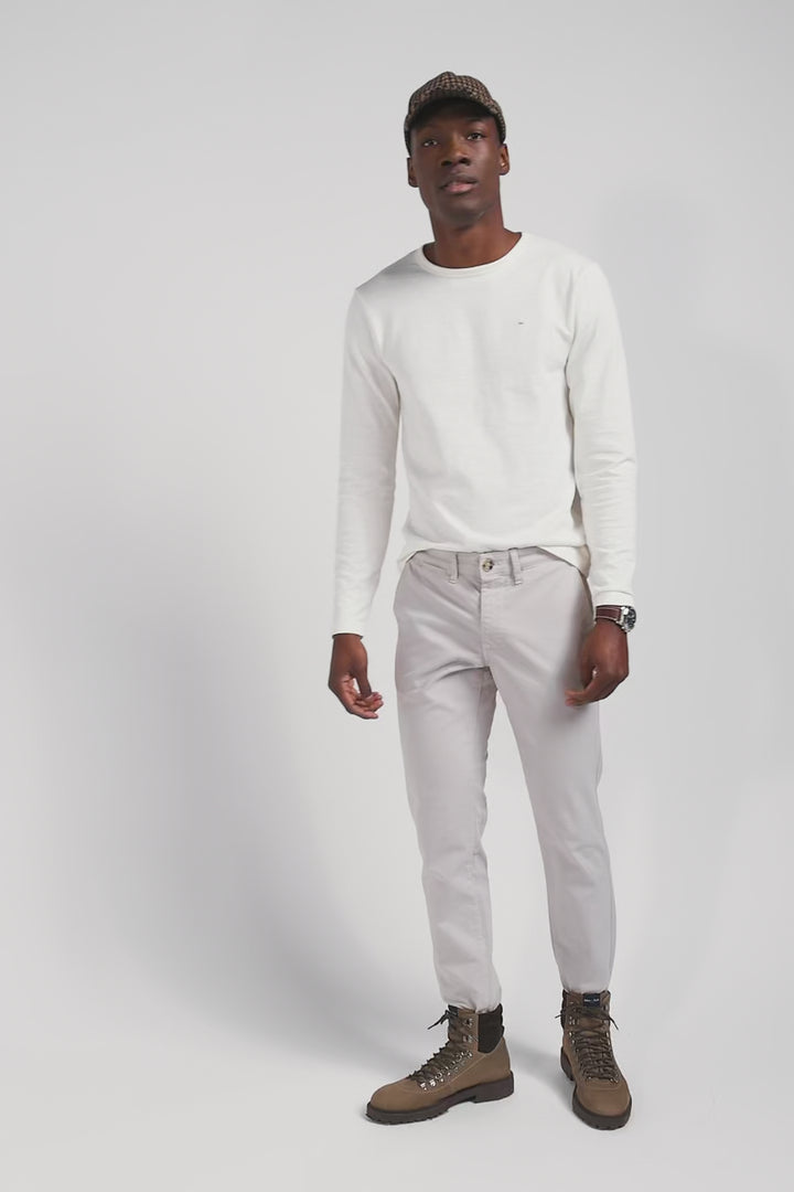 Slim ecru long-sleeved cotton T-shirt