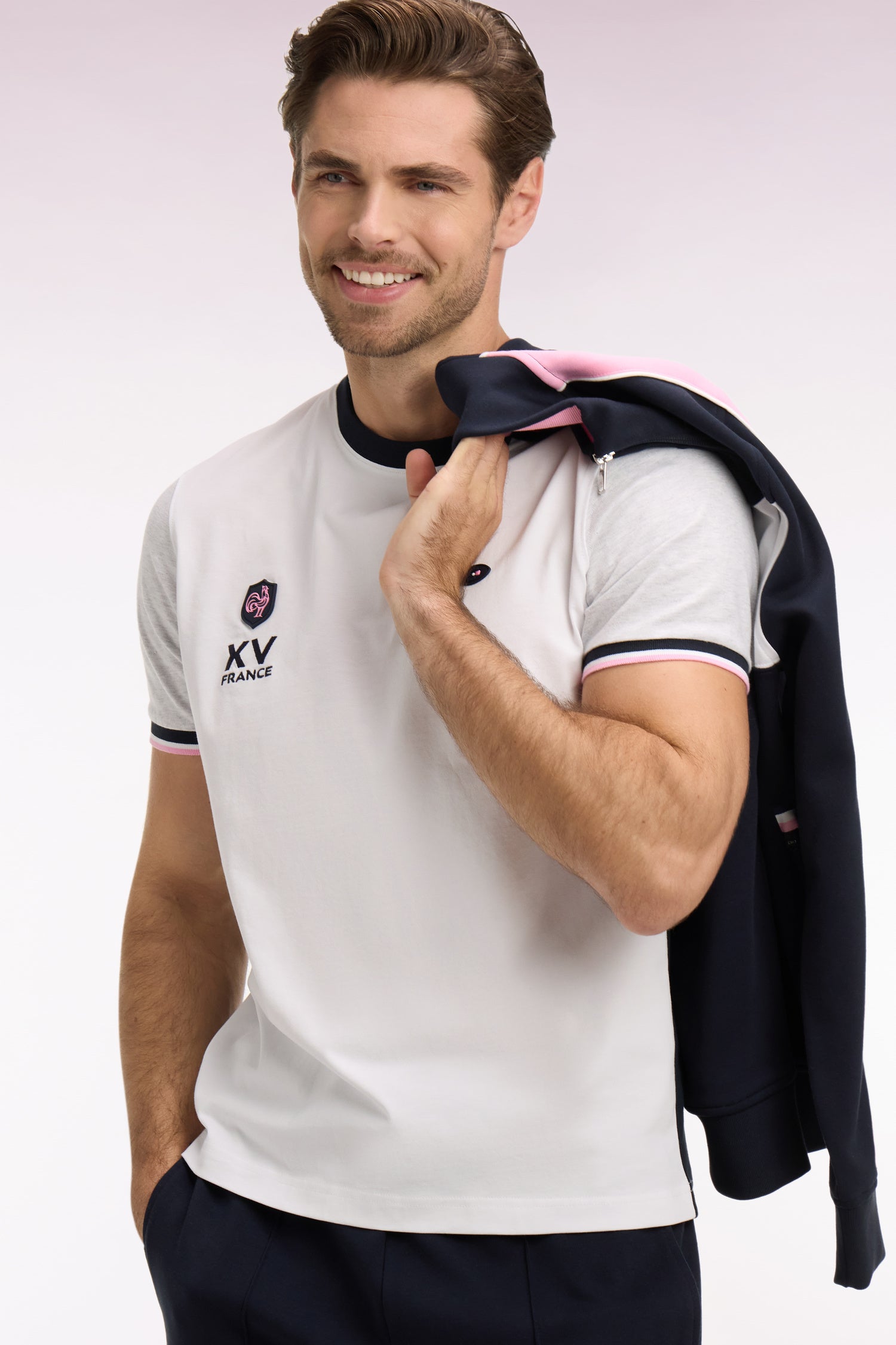 T-shirt XV de France à manches courtes en coton blanc brodé coupe regular
