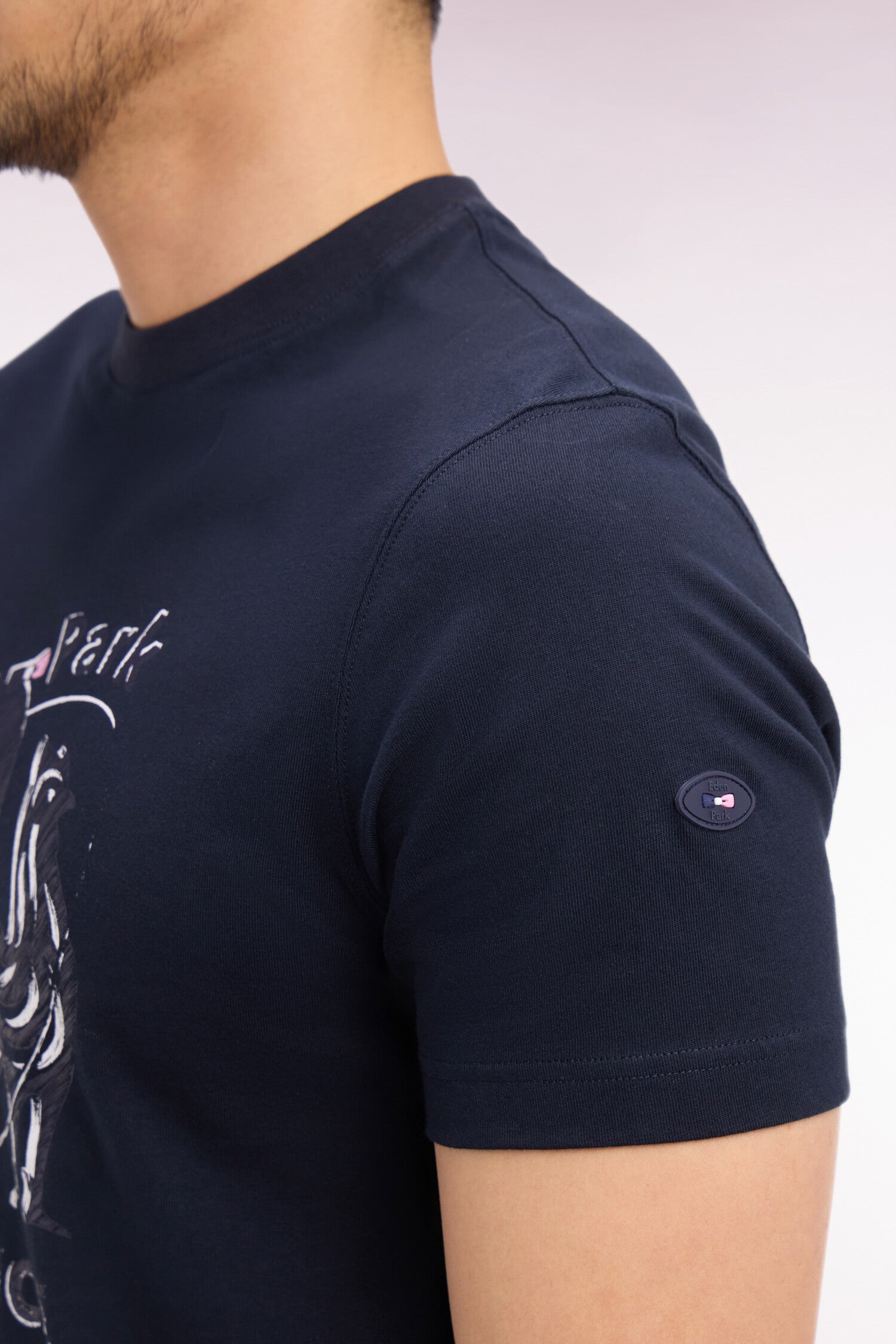 T-shirt XV de France à manches courtes en coton marine sérigraphié coupe regular
