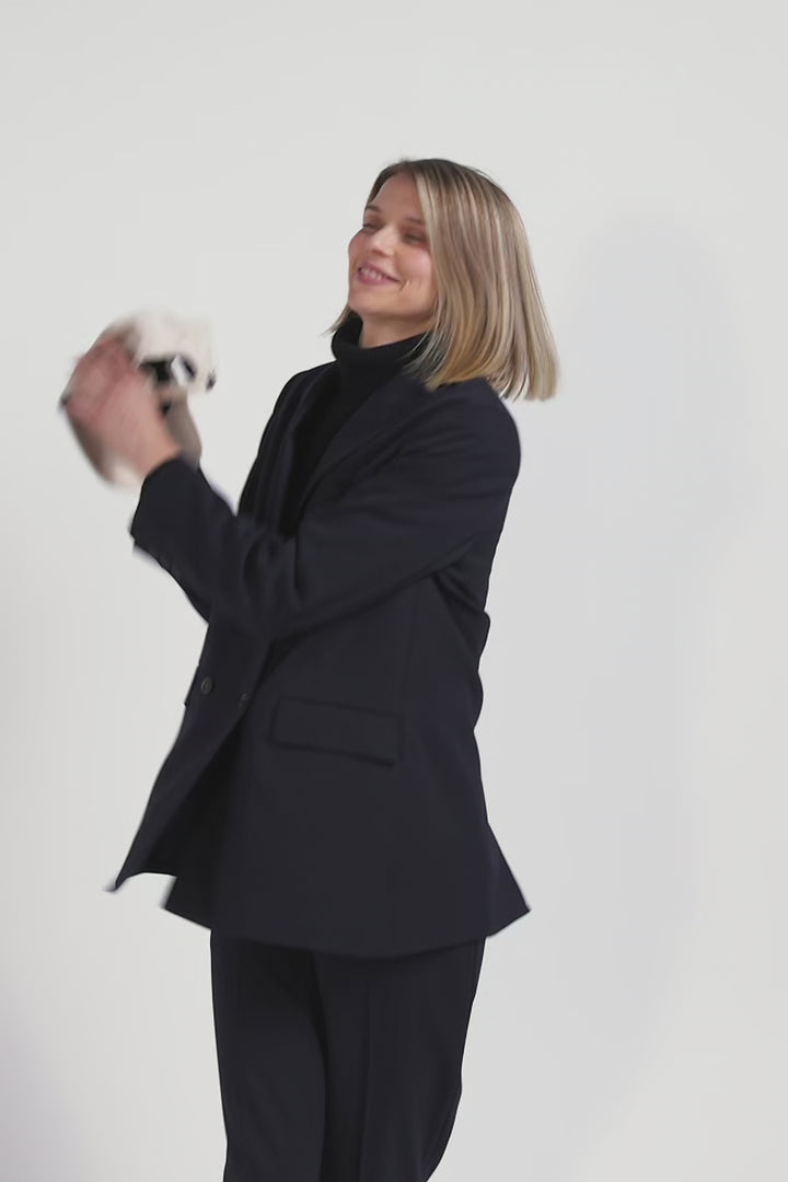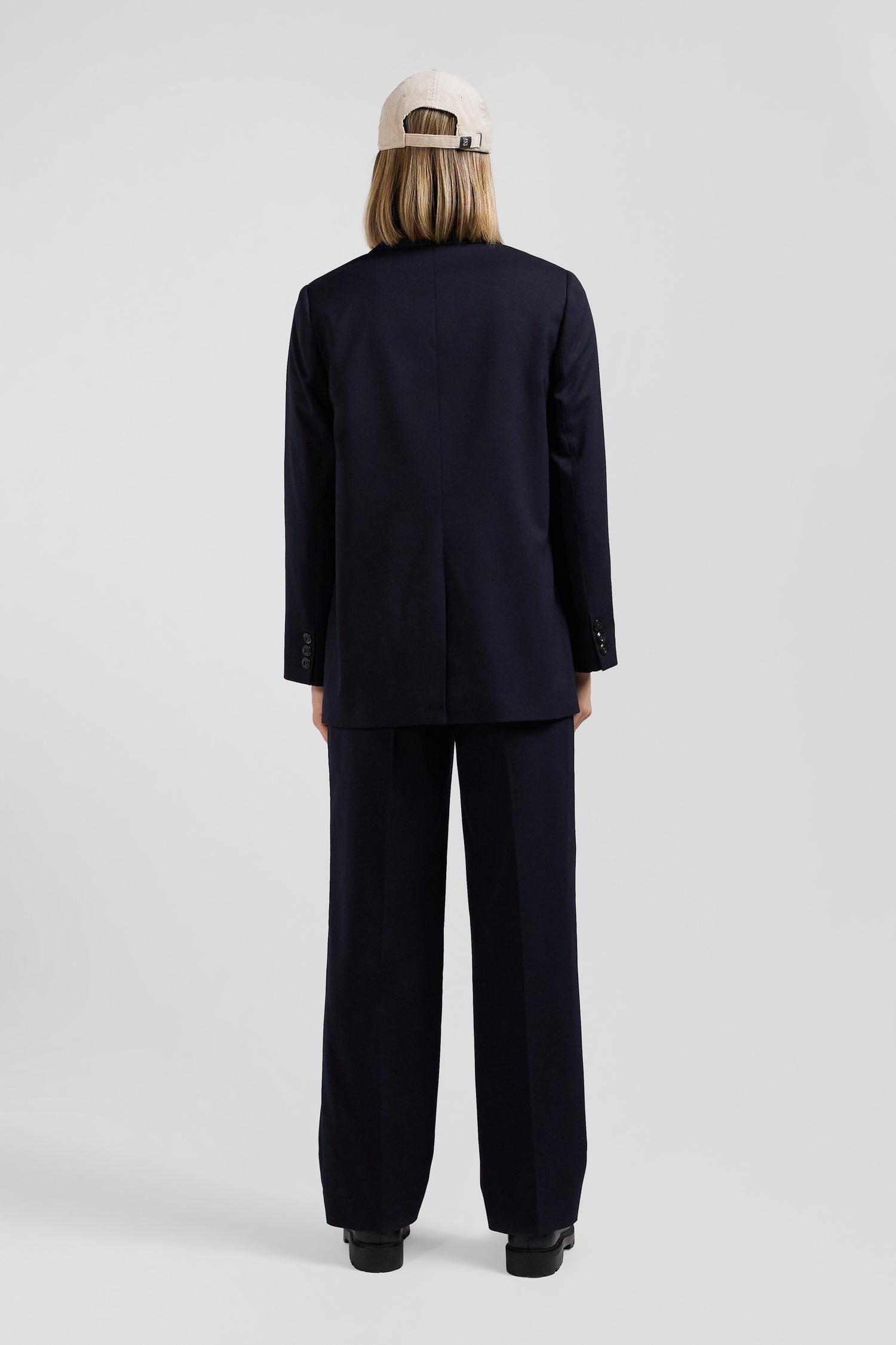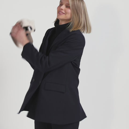 Opt for the refined elegance of this navy blue double-breasted blazer for any occasion. Its Modern cut refines the silhouette while adding a structured touch to this feminine jacket. Perfect for formal occasions or as a strong piece in a casual-chic look, this double-breasted blazer with pointed collar is a must-have for women seeking style and functionality. Its pockets make this jacket both elegant and functional.