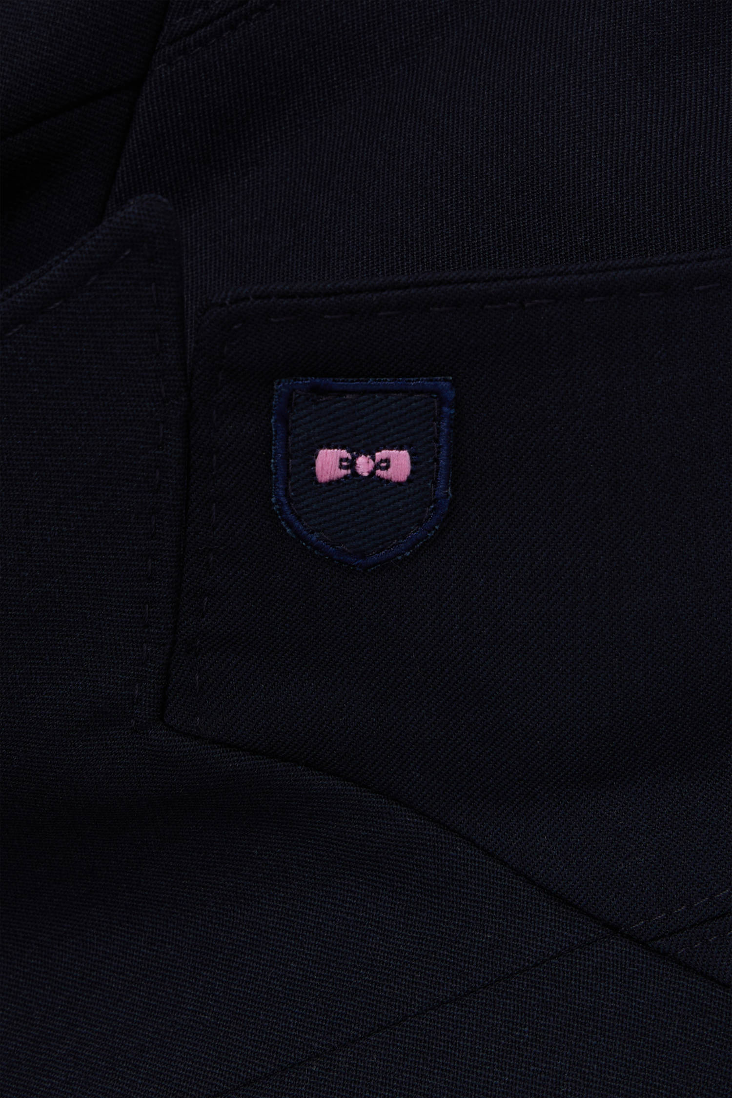 • Embroidered pink bow tie badge