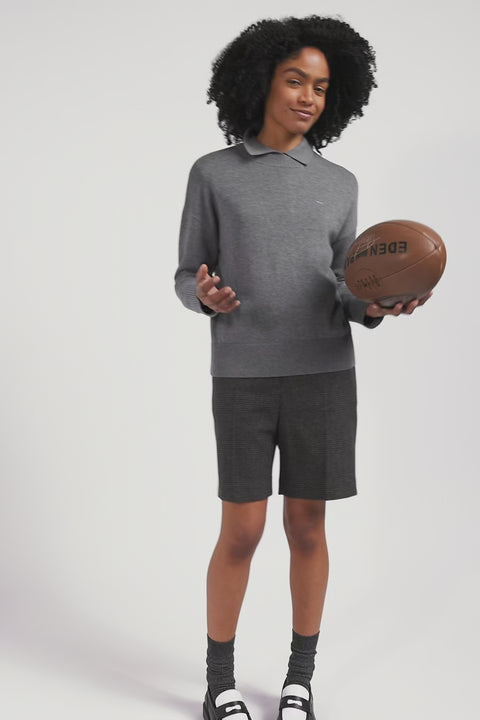 Regular mottled grey women's wool jumper with rugby shirt collar
