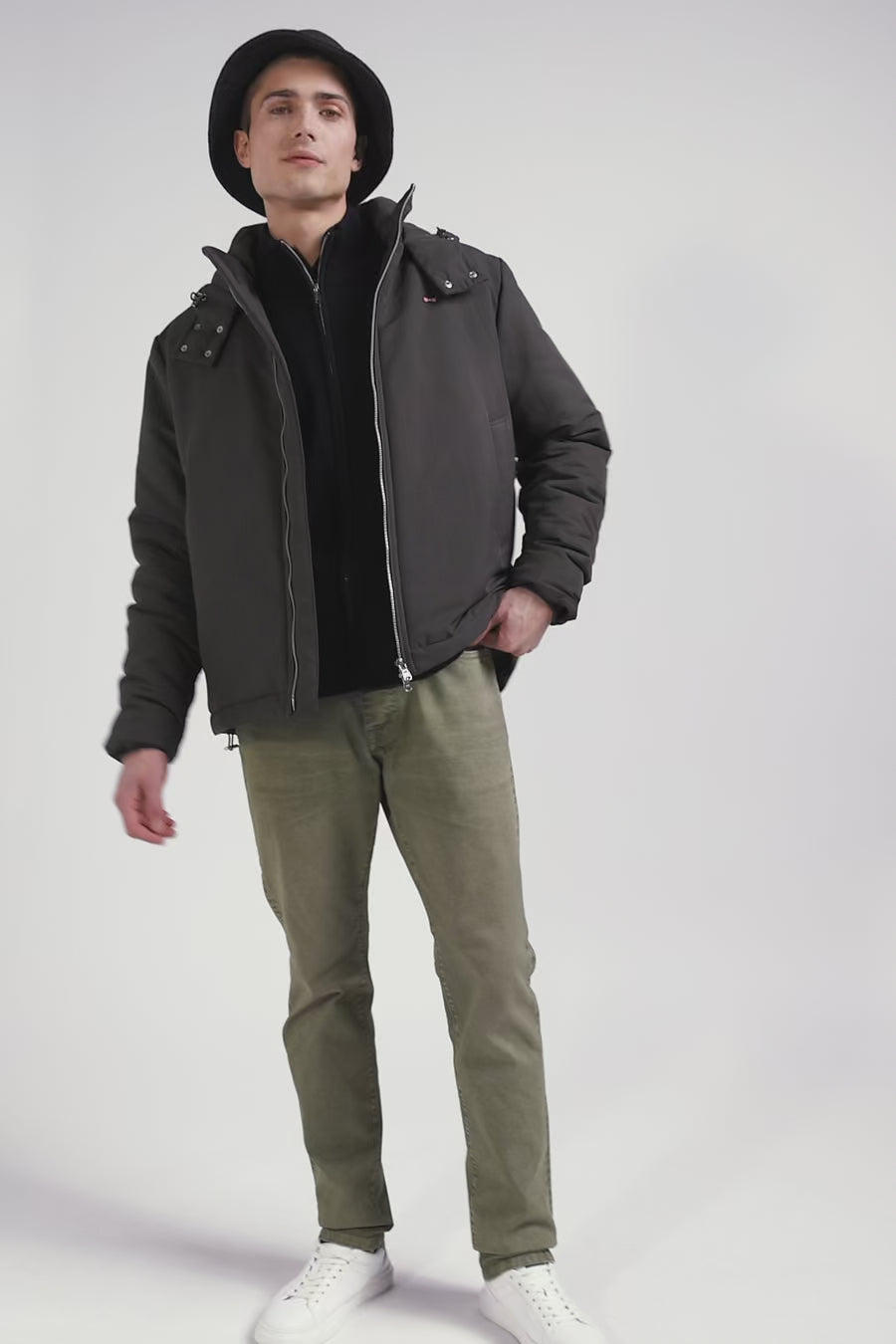 Khaki hooded zip-up jacket