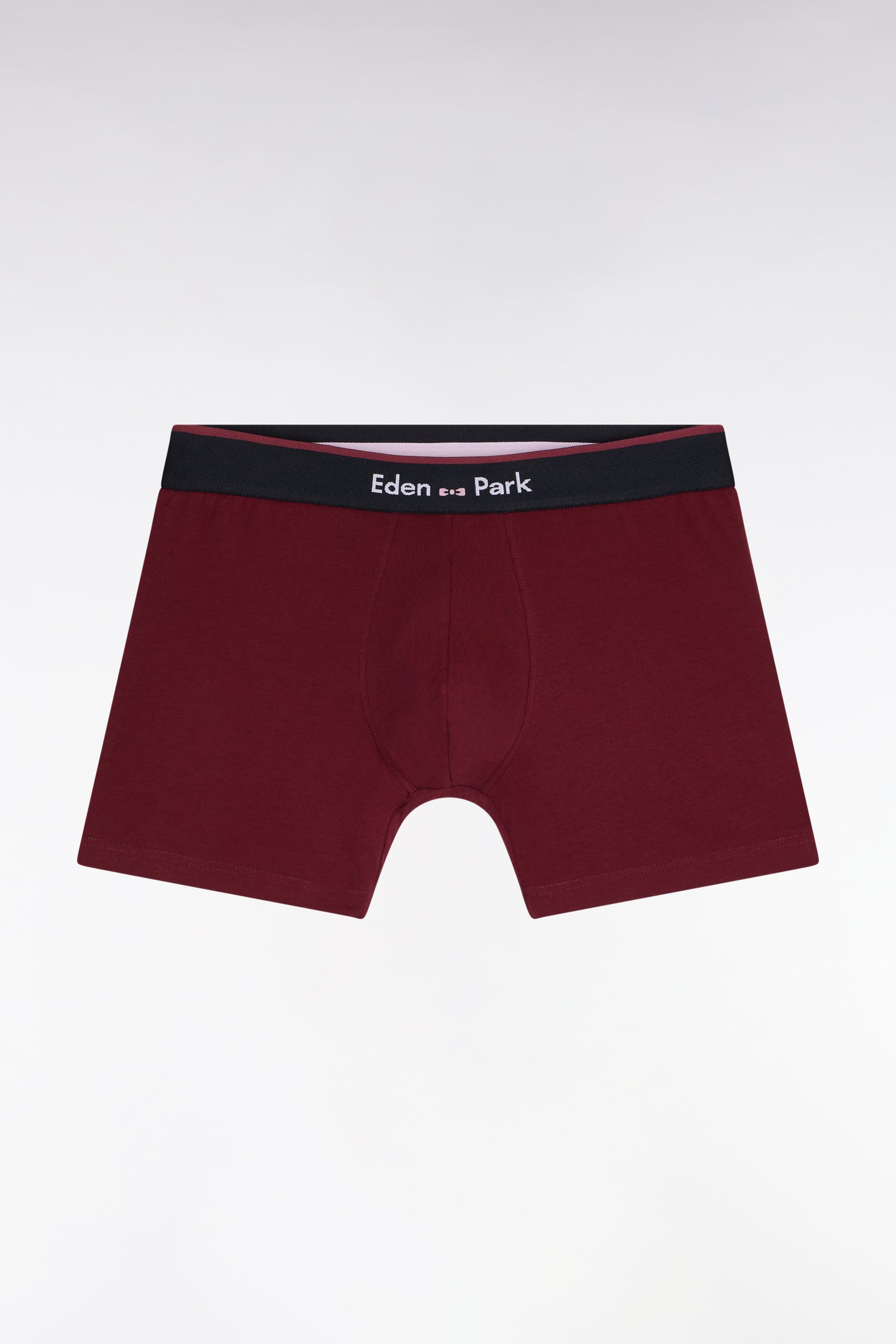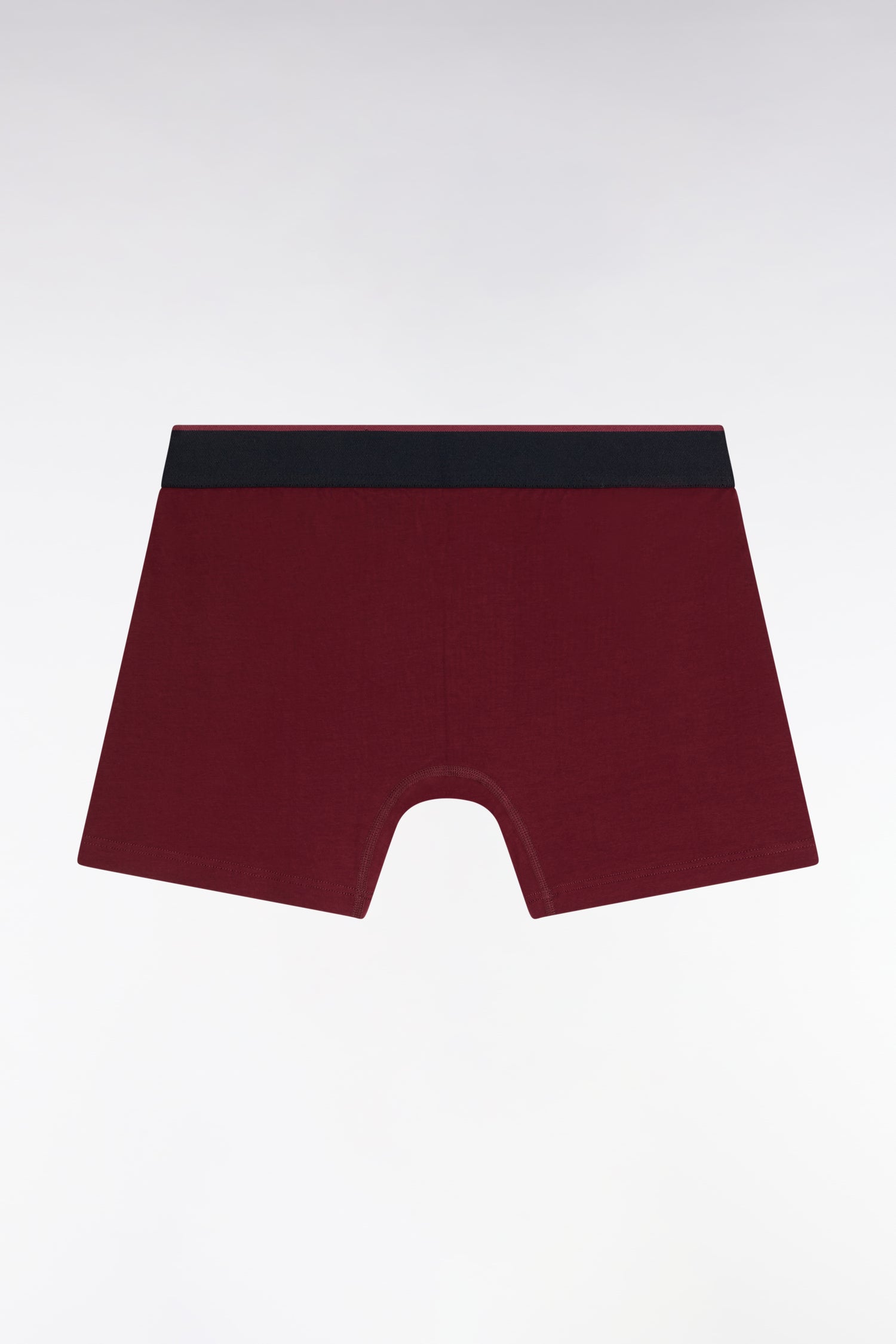 Boxer shorts in burgundy cotton jersey with contrasting stripes
