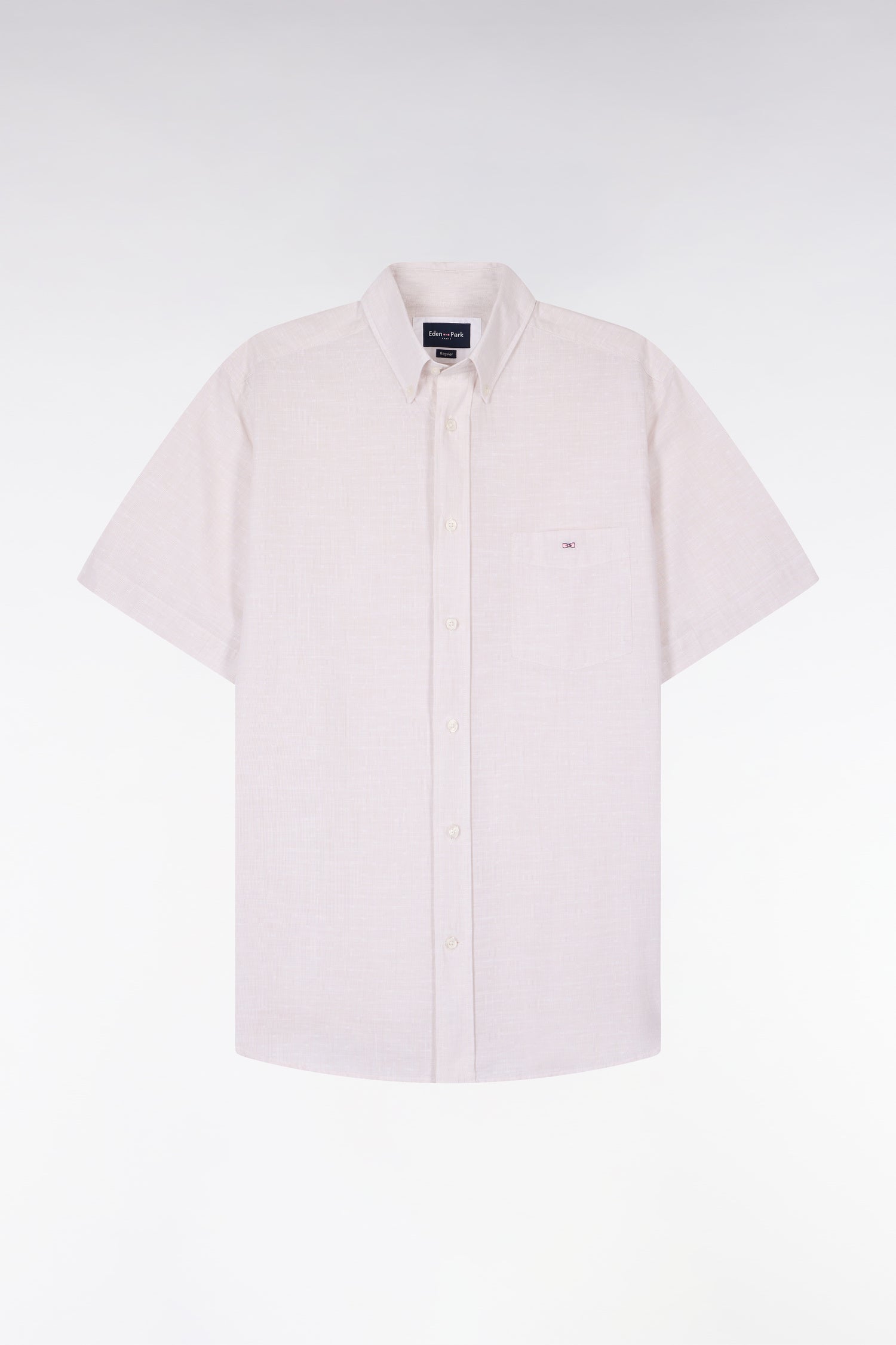 Chemise à manches courtes en coton jacquard rayé grège