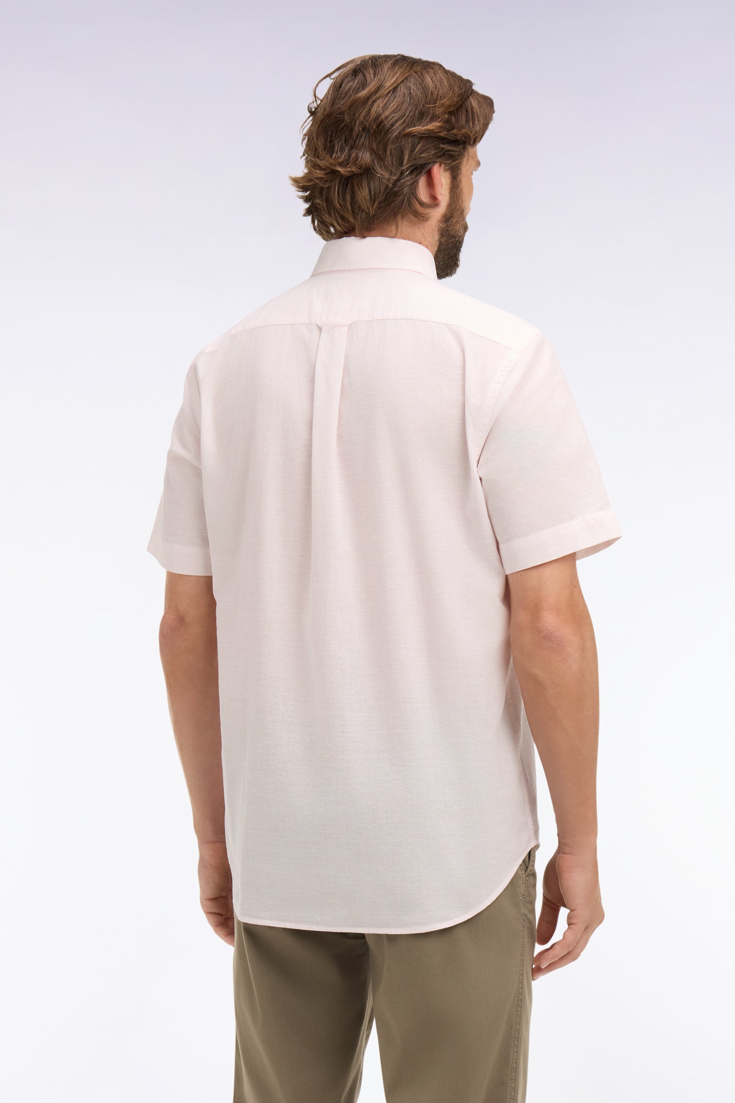 Subtilement texturée grâce à un tissage jacquard Dobby, cette chemise à manches courtes en tissus italien à rayures bâton conjugue élégance et fraîcheur. Son motif tissé ton sur ton reflète l’expertise de la Maison dans le choix d'étoffes confortables, durables et élégantes. Polyvalente et raffinée, cette chemisette en coton se prête aussi bien aux tenues décontractées qu’aux looks plus habillés grâce à un large choix de coloris saisonniers.