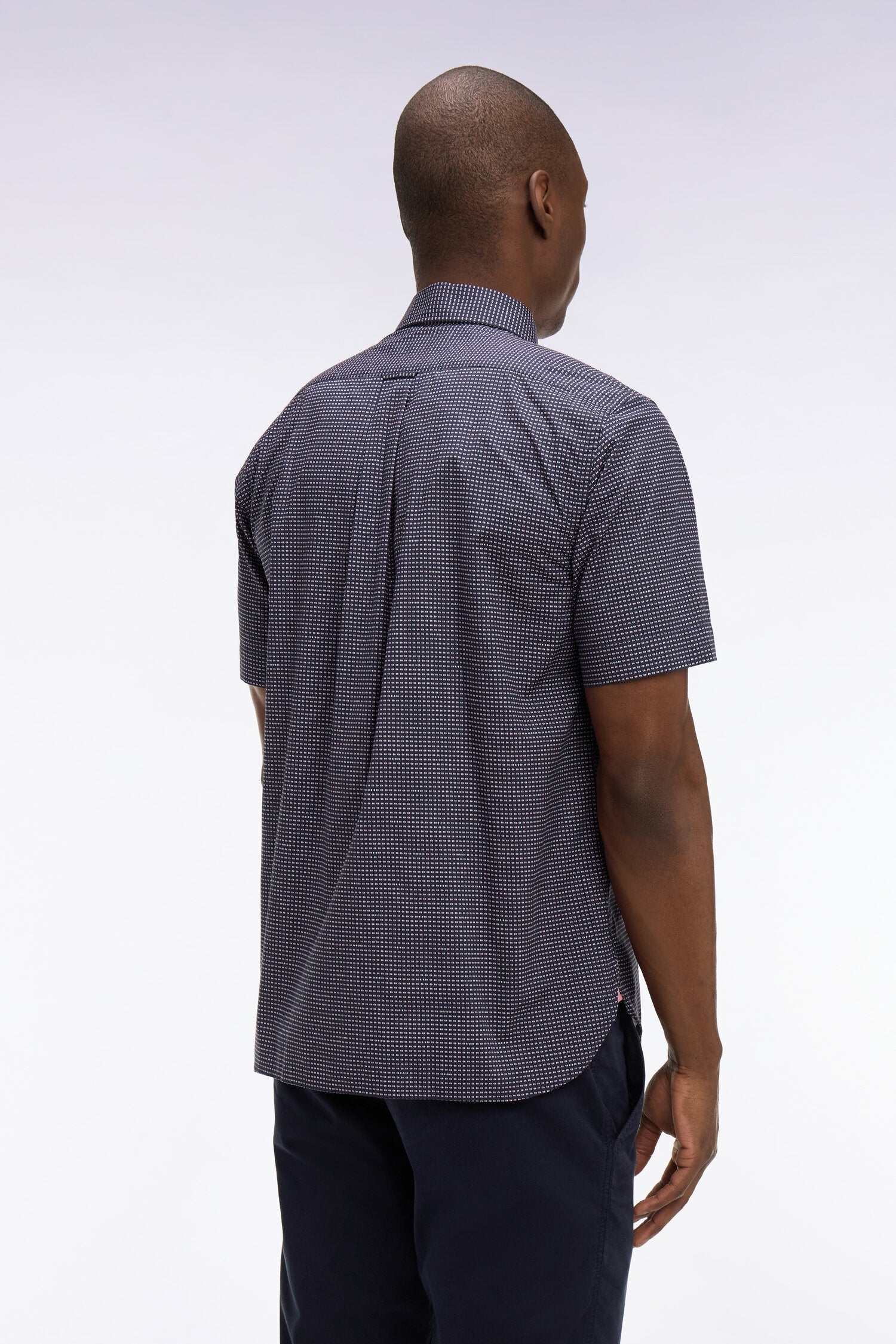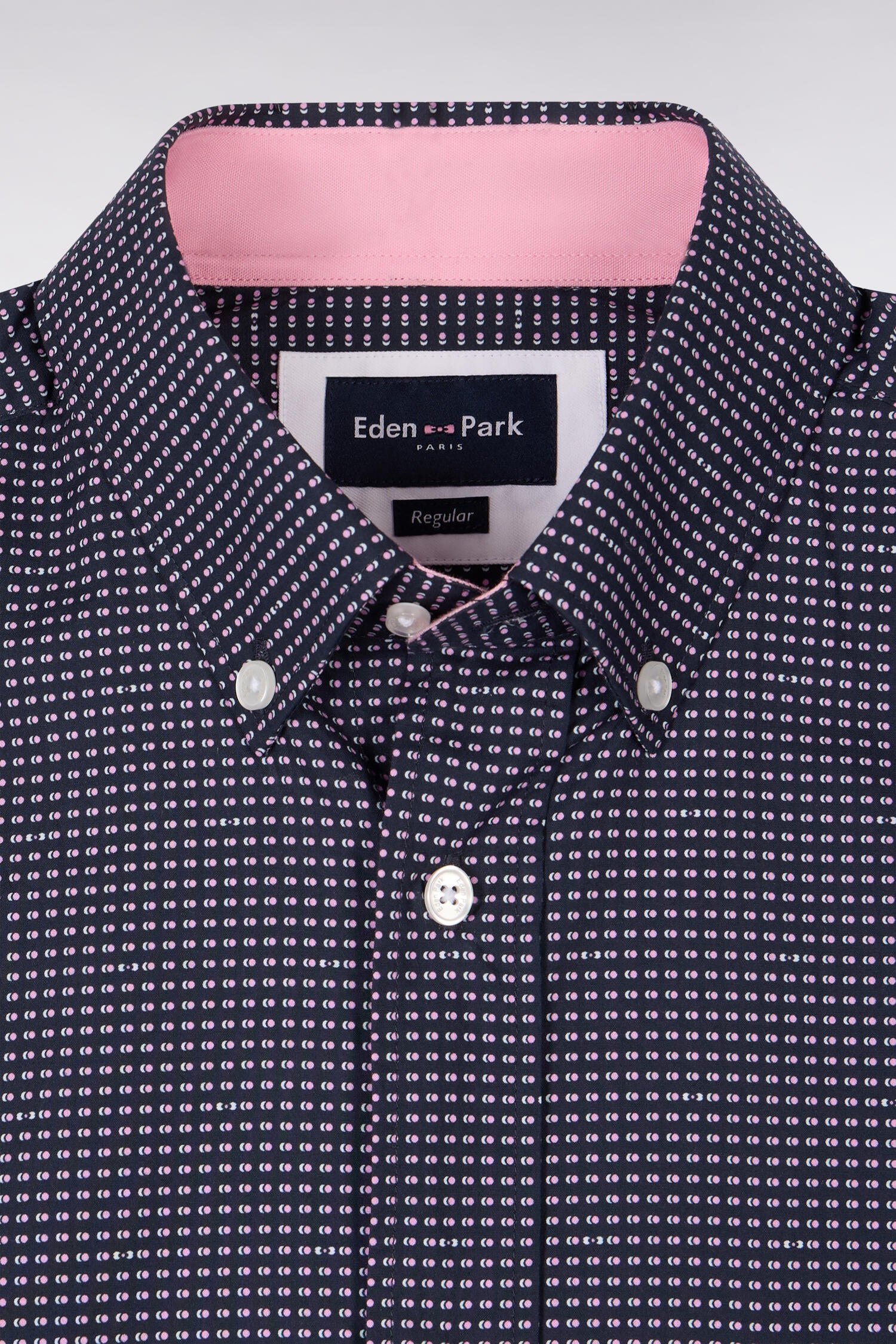Chemise à manches courtes en coton marine à micromotifs roses
