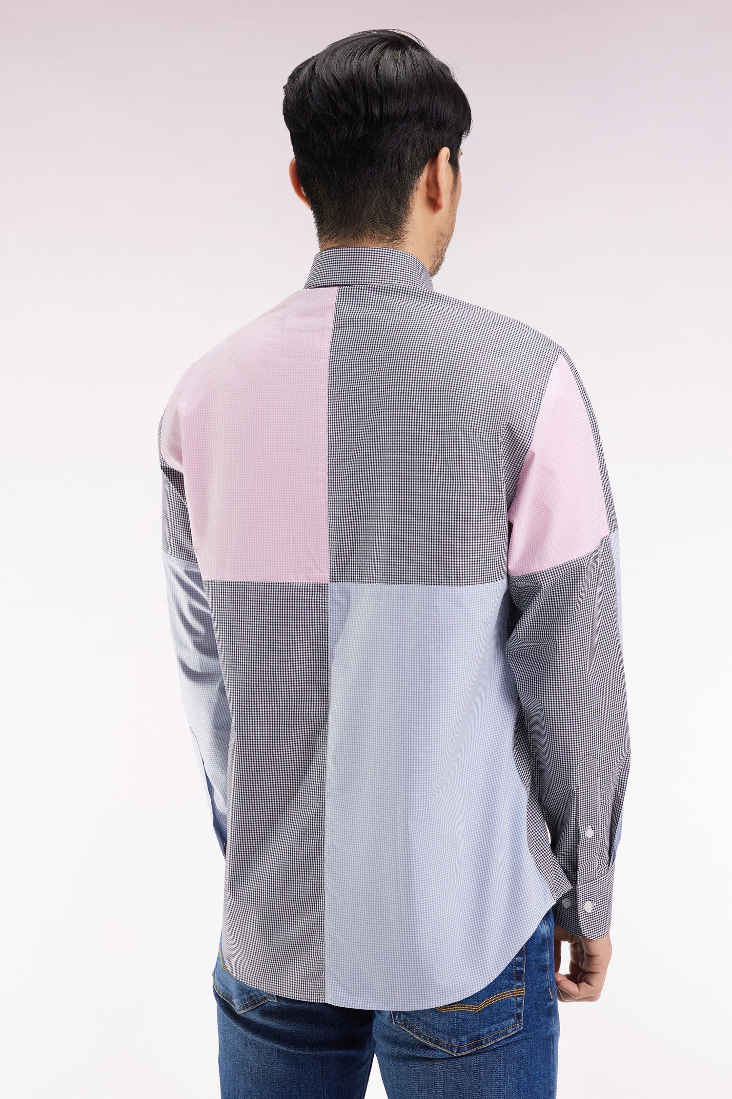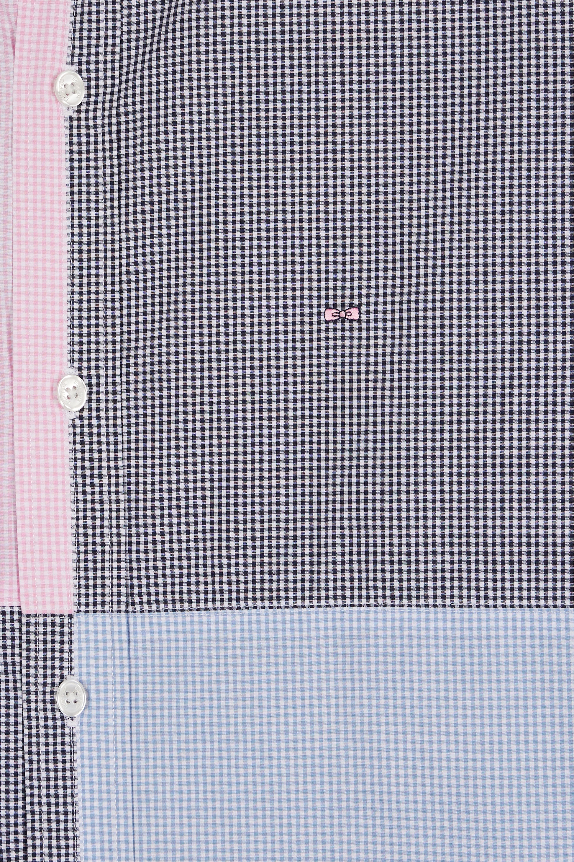 Between elegance and boldness, this men's shirt plays on the balance of contrasts with its cut-and-sewn design in four dials, alternating blue and pink panels. A strong graphic composition, inspired by the world of rugby and enhanced by the emblematic finishes of the Eden Park wardrobe.