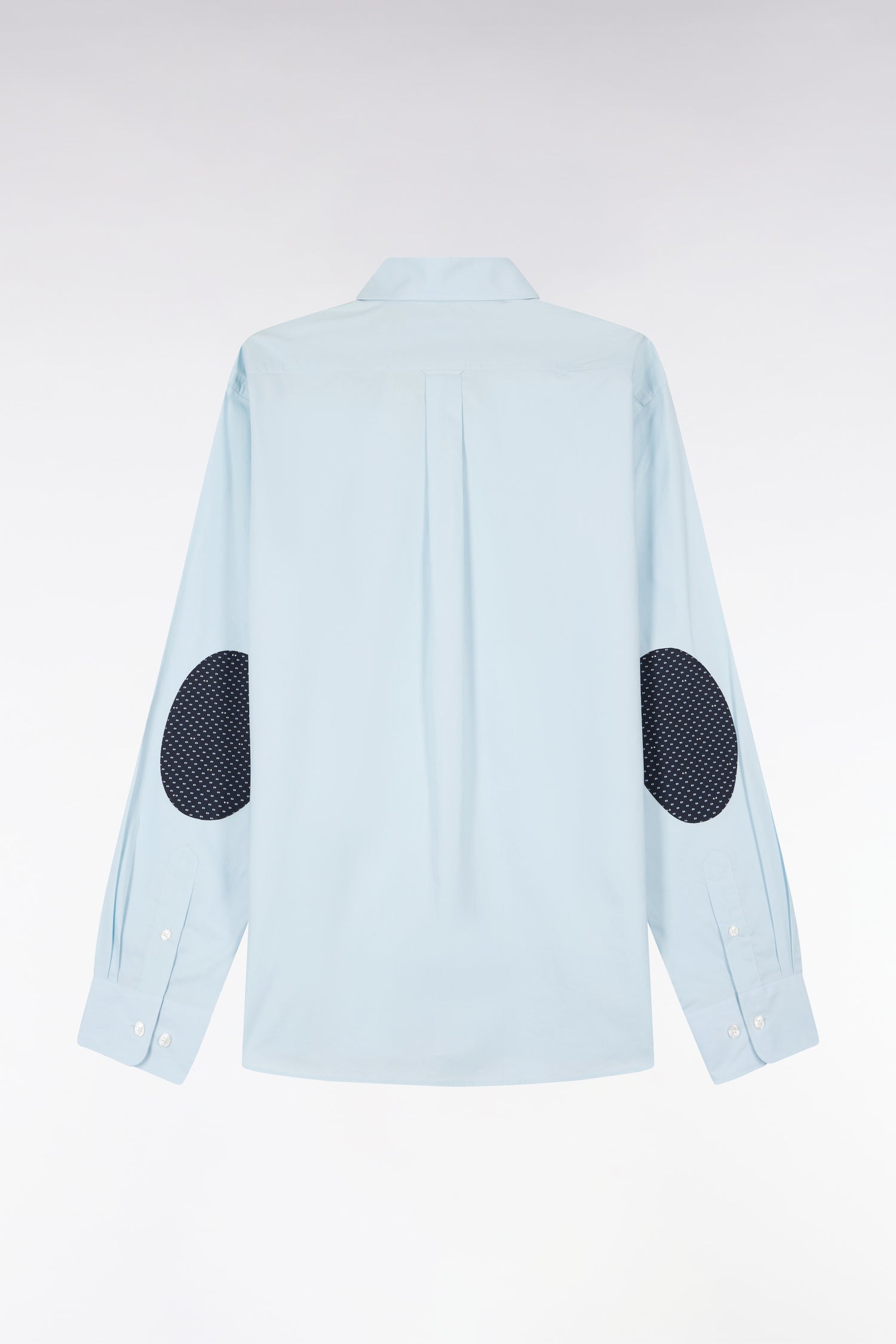 Cette chemise à manches longues en popeline de coton associe sobriété et détails soignés. Animée d’un micro motif discret sur ses coudières patchées, elle revisite un classique du vestiaire masculin avec une touche contemporaine typique de l'esprit French Flair Eden Park. Sa coupe droite et son col à pointes boutonnées assurent un porté confortable et polyvalent. La poche poitrine ornée du nœud brodé signe l’identité Eden Park, tandis que le pli dos garantit une belle amplitude de mouvement. Déclinée en 4 coloris intemporels, cette chemise est une alliée idéale pour composer des silhouettes estivales et élégantes.
