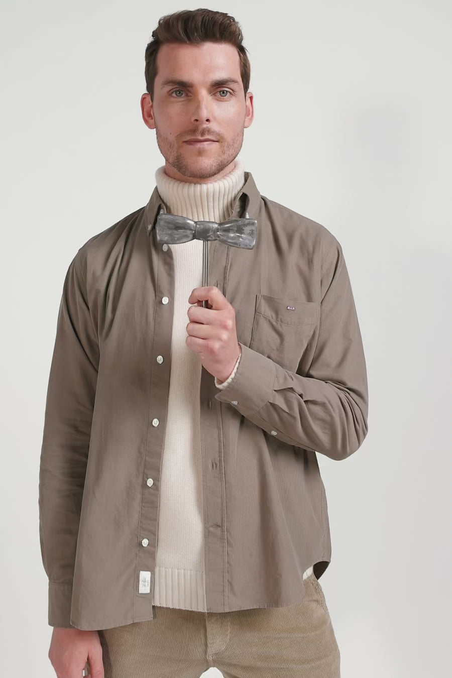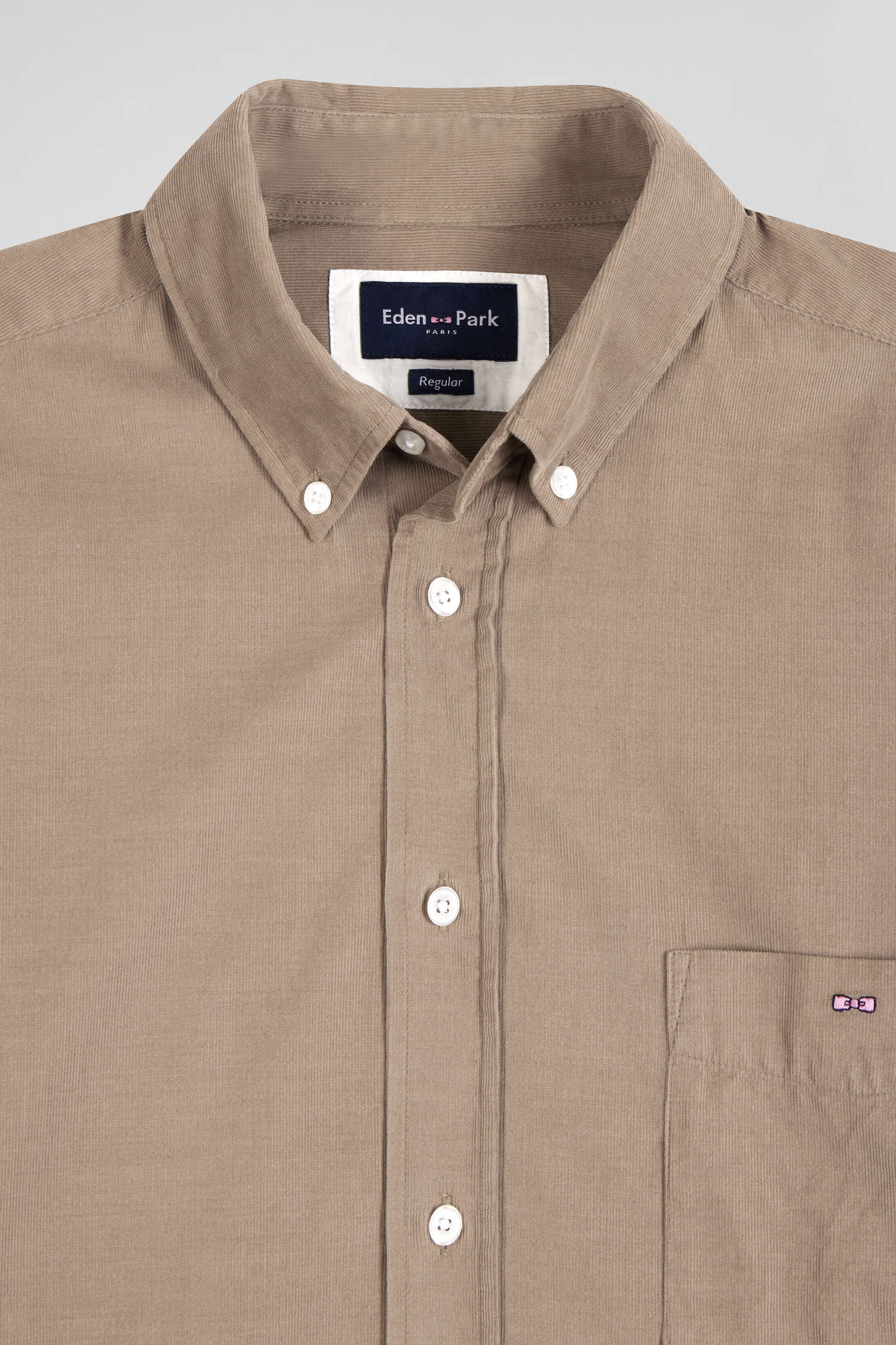 Plain beige corduroy shirt with button-down collar and chest pocket Regular fit