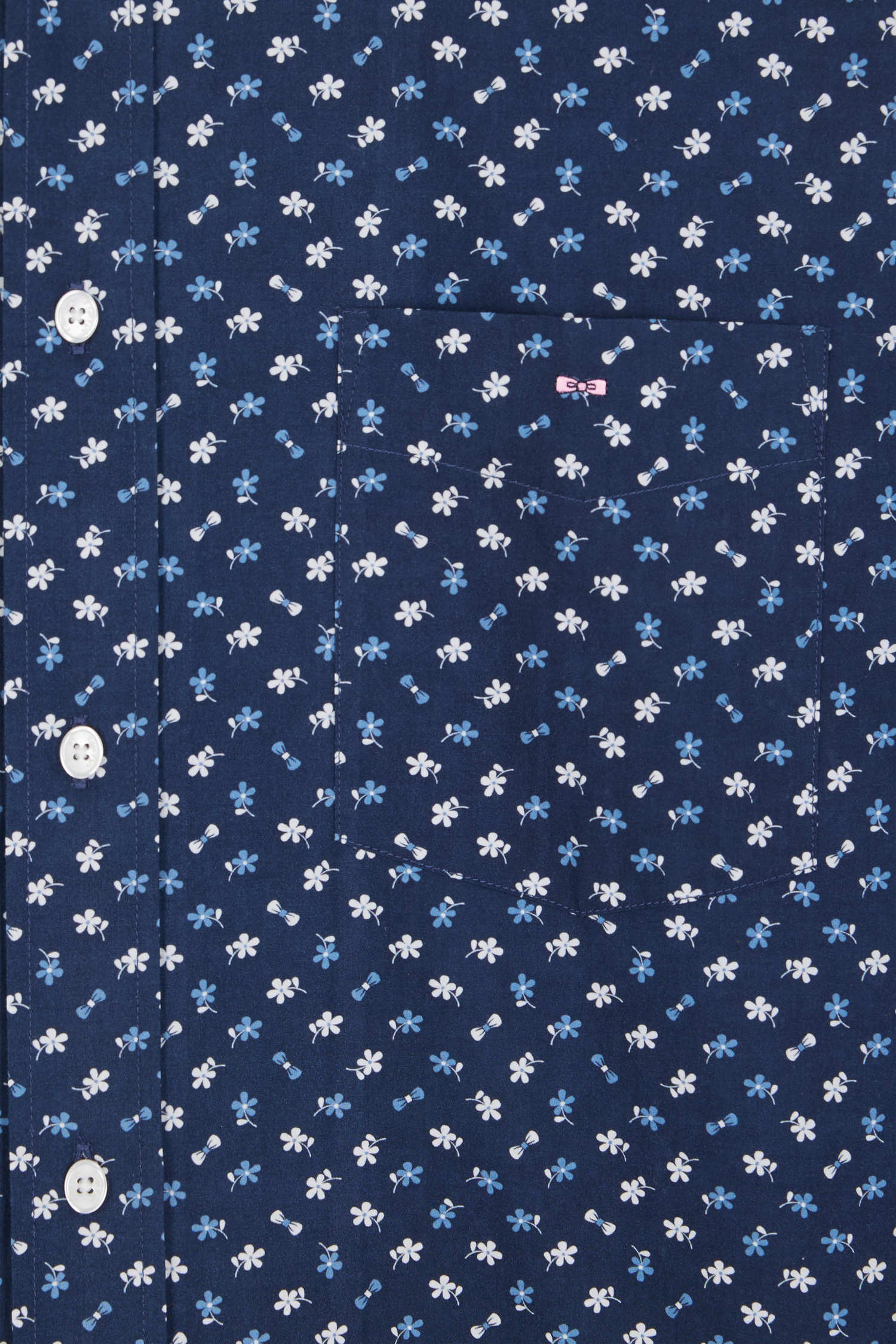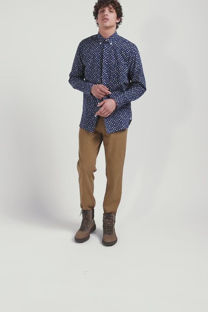 Opt for elegant masculine style with our navy shirt, enlivened by a floral microprint. Perfect for a casual yet polished look, this men's shirt combines relaxation and refinement with ease. This printed shirt is ideal for those looking to combine comfort and style, reflecting the spirit of our brand while adding a subtle touch of originality to your everyday outfit.