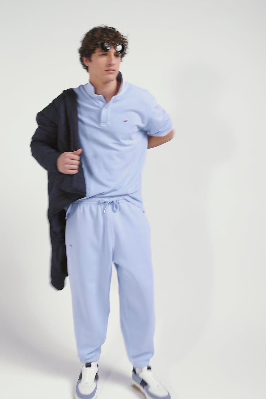 Oversized sky blue unisex short-sleeved cotton piqué polo shirt