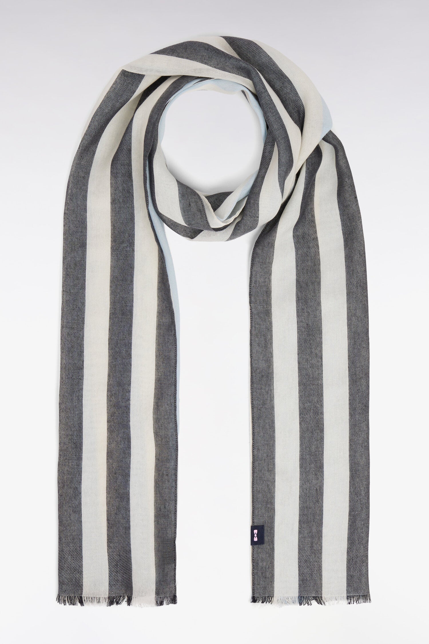 Cette grande écharpe en coton mélangée est proposé dans un duo marine et ciel ou en rose et marine. Ses larges rayures contrastées et sa légèreté en font un accessoire idéal pour la saison, permettant de s'envelopper avec élégance tout en restant confortable.