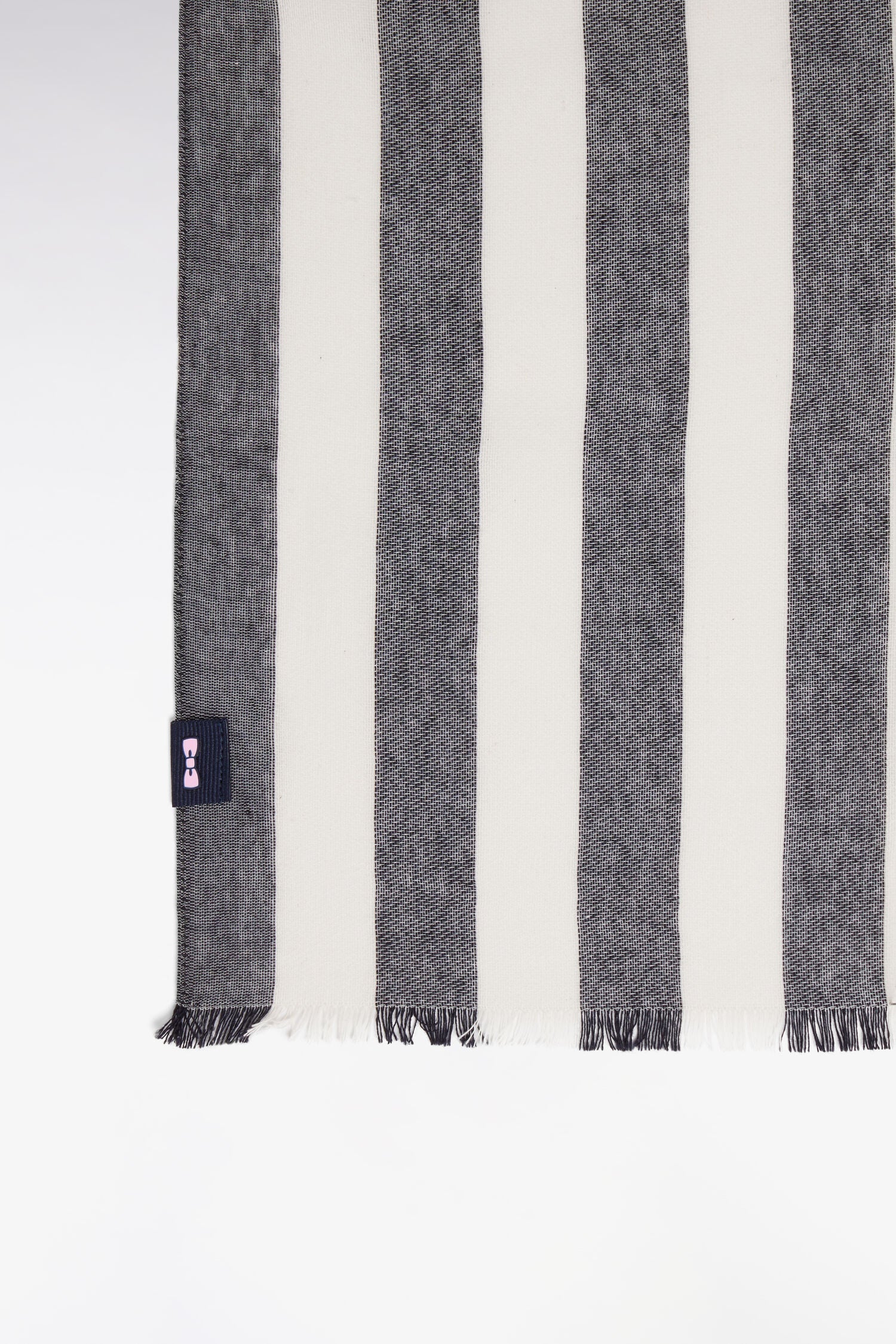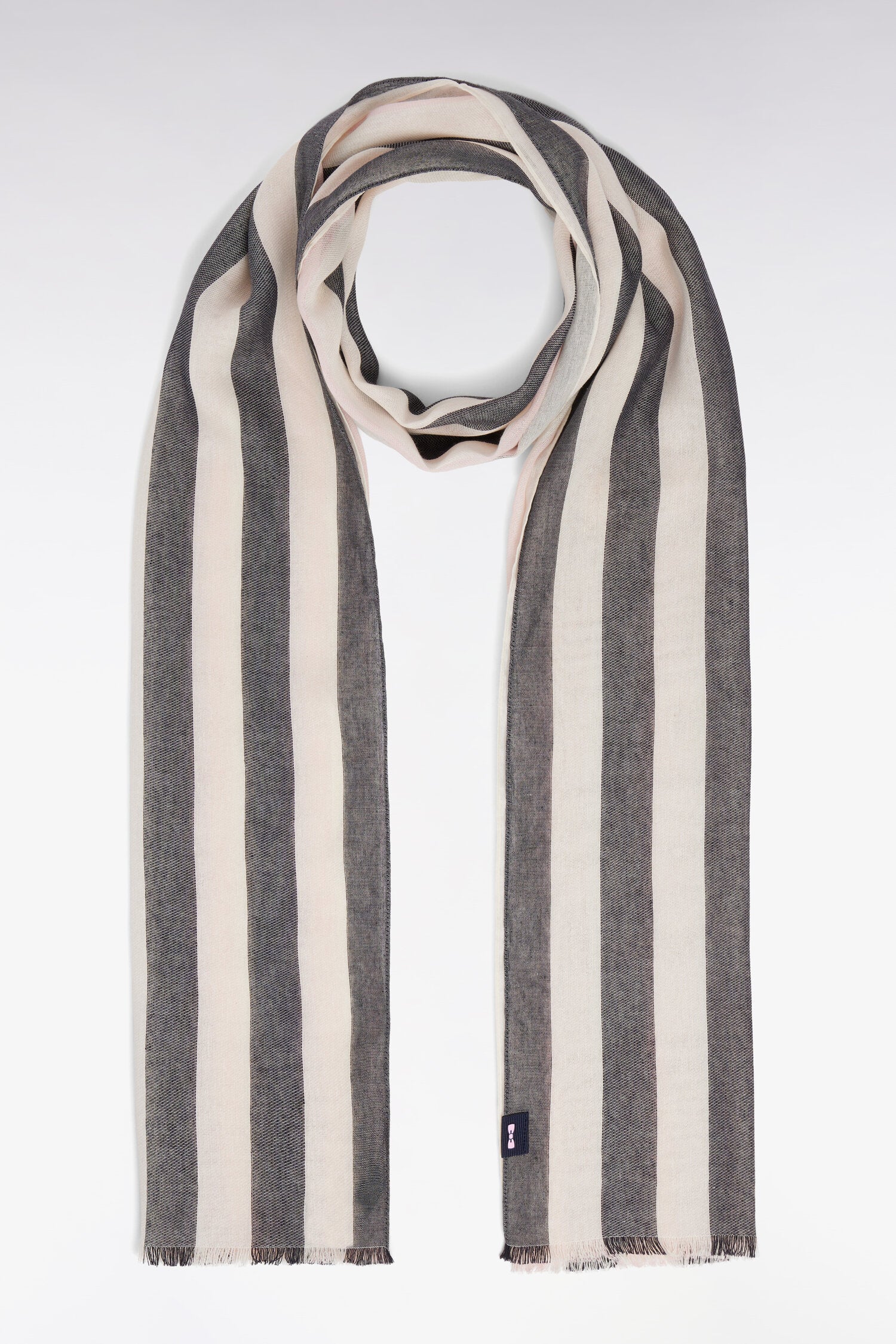 Cette grande écharpe en coton mélangée est proposé dans un duo marine et ciel ou en rose et marine. Ses larges rayures contrastées et sa légèreté en font un accessoire idéal pour la saison, permettant de s'envelopper avec élégance tout en restant confortable.