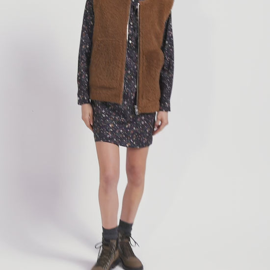 Sleeveless zip-up vest in hazelnut sheepskin Relaxed fit