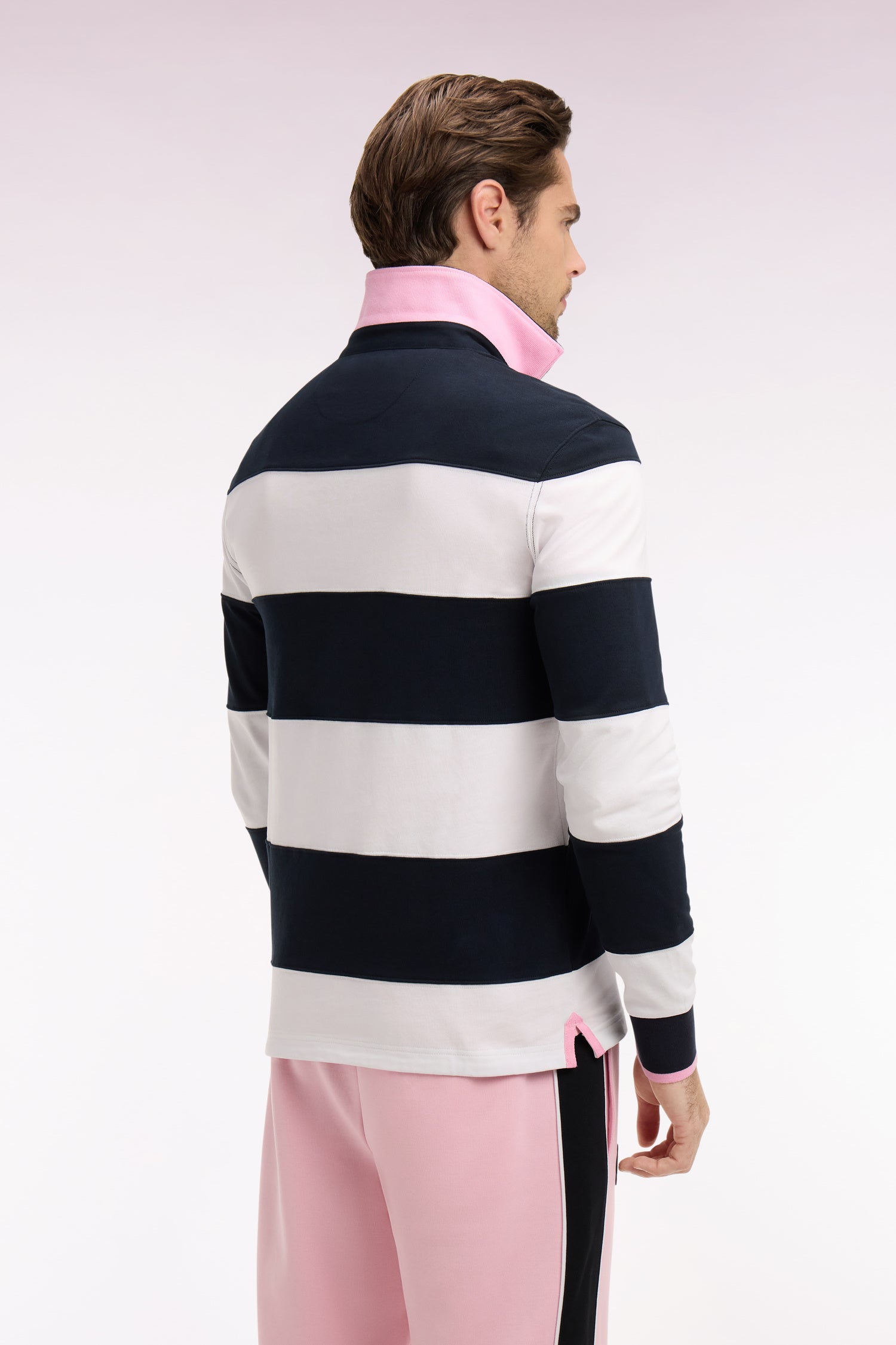 Maillot 6 Nations à manches longues en coton rayé blanc et marine