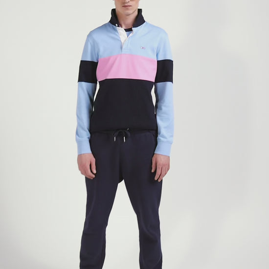 Make a style statement with this Eden Park long-sleeved men's jersey. Sporting elegance is reinvented in a colorblock tribute to the iconic colors of our House. The bold embroidery of the number 10 on the back, highlighted by hooped tie fabric, celebrates rugby heritage with panache. The classic collar, contrasting button placket and iconic embroidered bow tie give this characterful piece a distinguished finish.