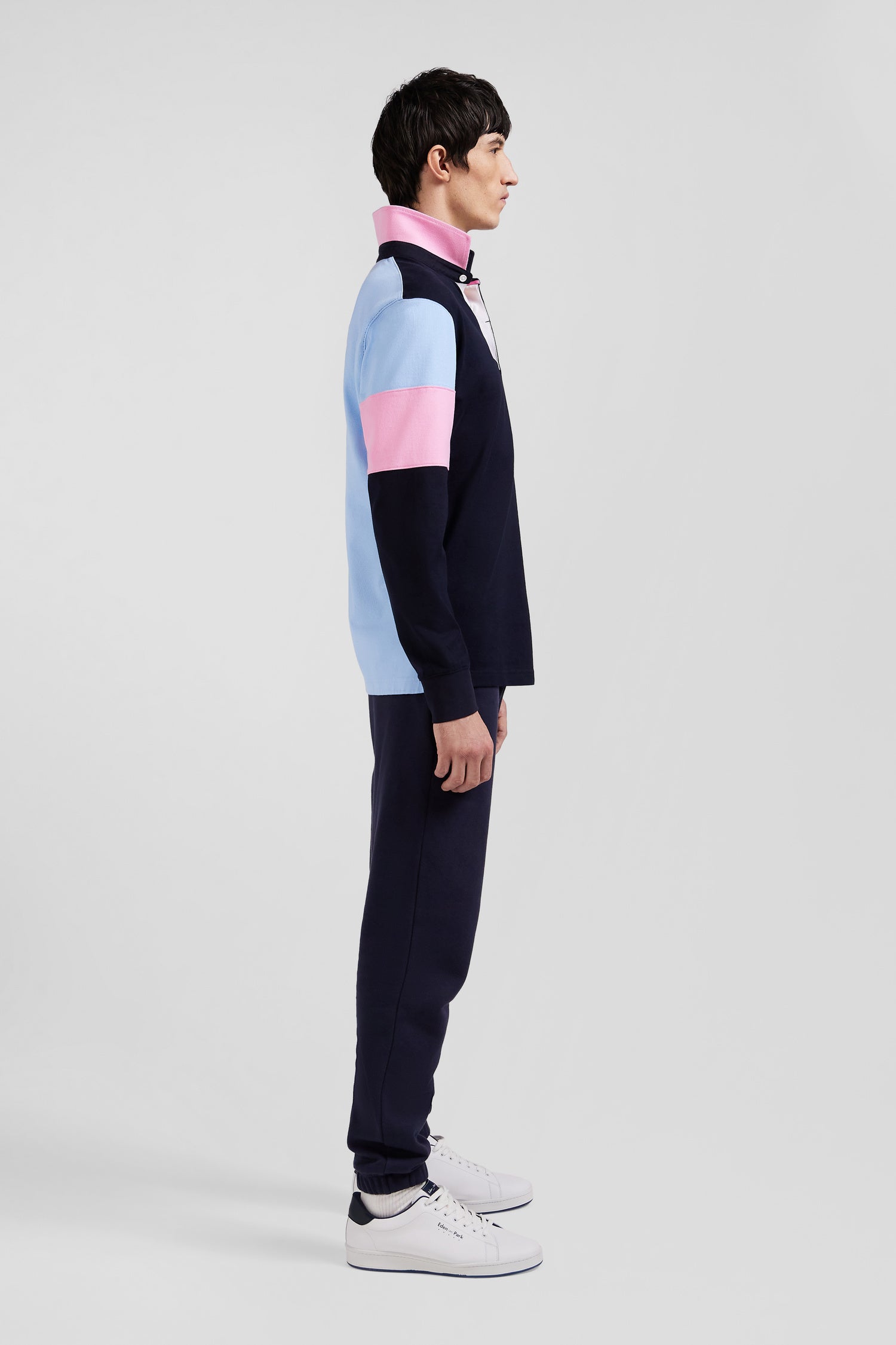 Set your sights on distinctive style with this men's long-sleeved jersey that fuses ease and sporty elegance. The regular fit and choice of pure cotton are complemented by subtle color schemes, mismatched sleeves and refined details such as number 10 embroidery and hooped tie fabric appliqués on the back. An essential with a rich rugby heritage to wear with chino or denim pants.